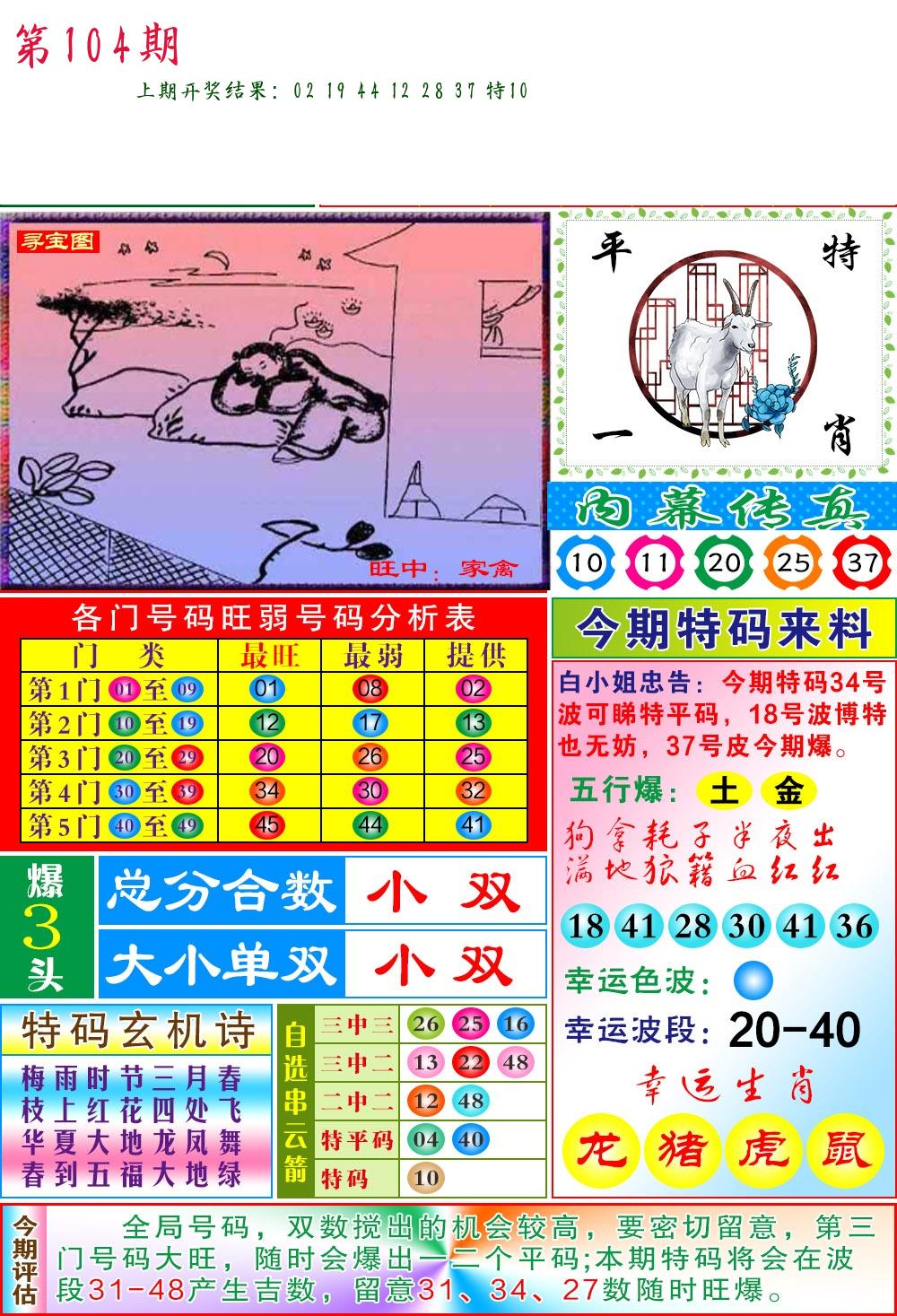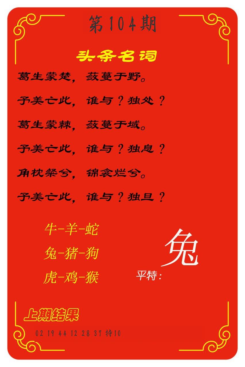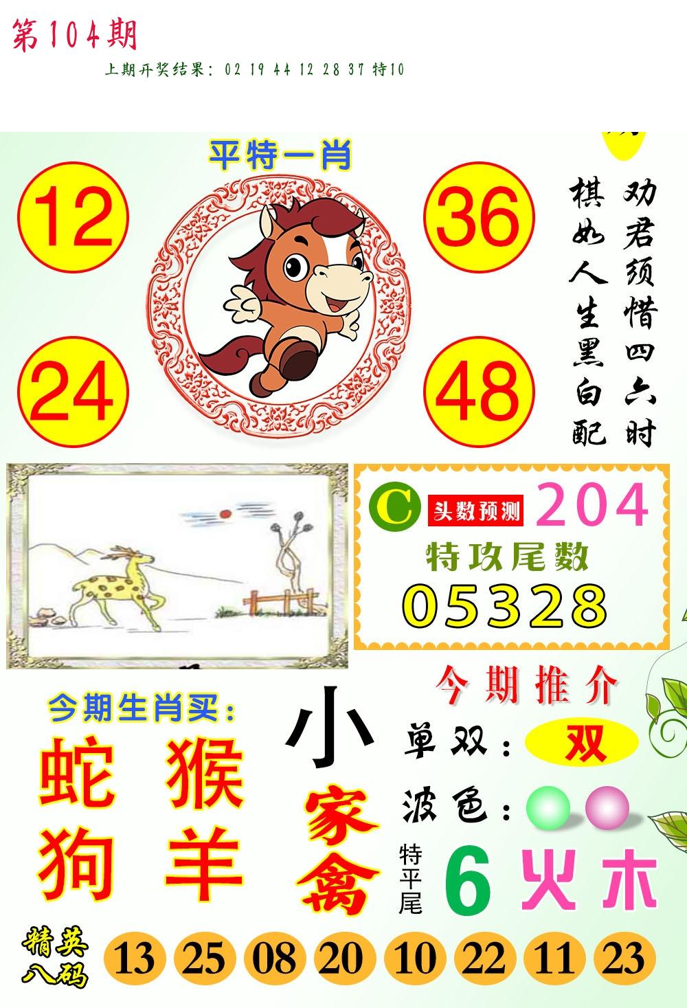 | 104期【三连肖/11.12倍】