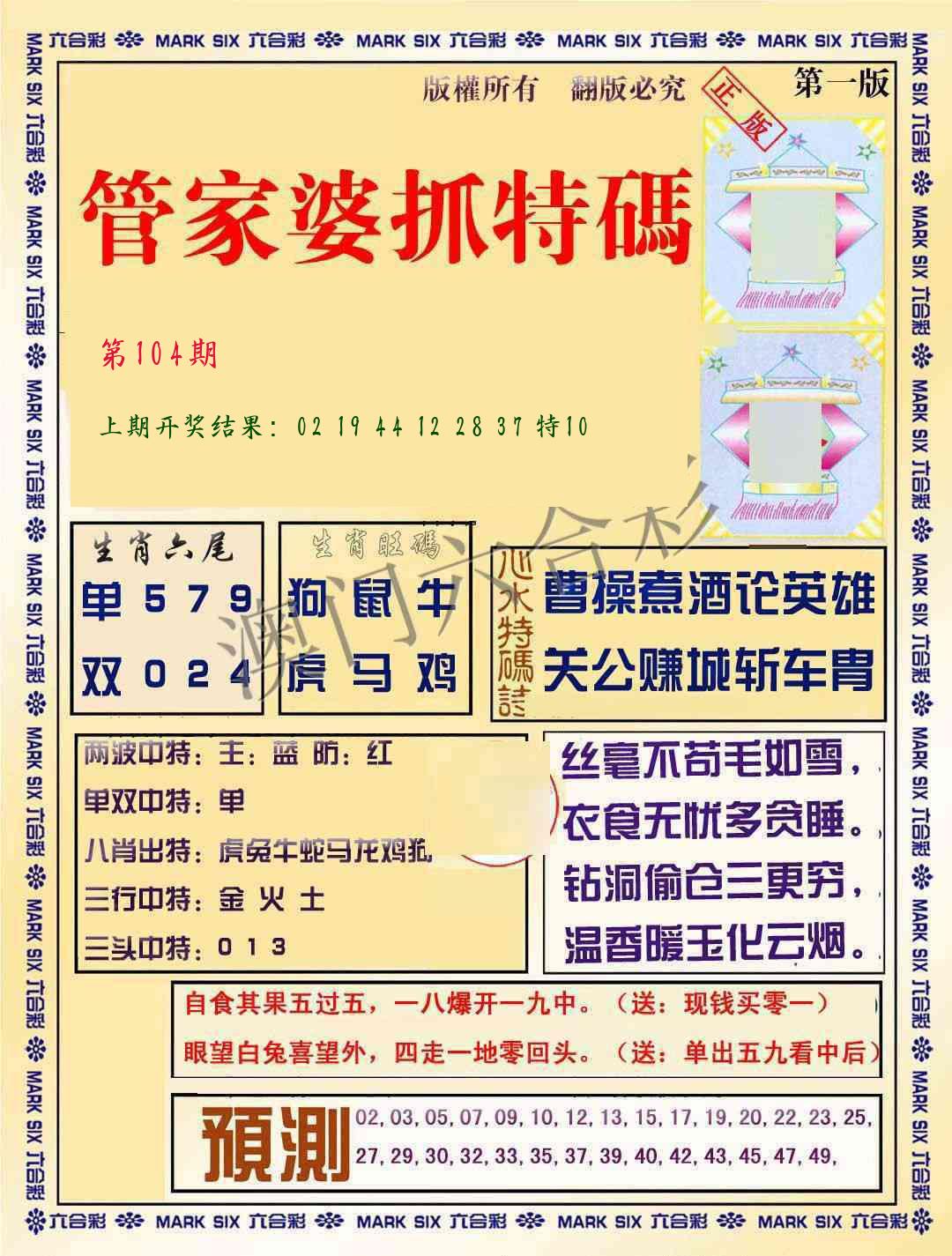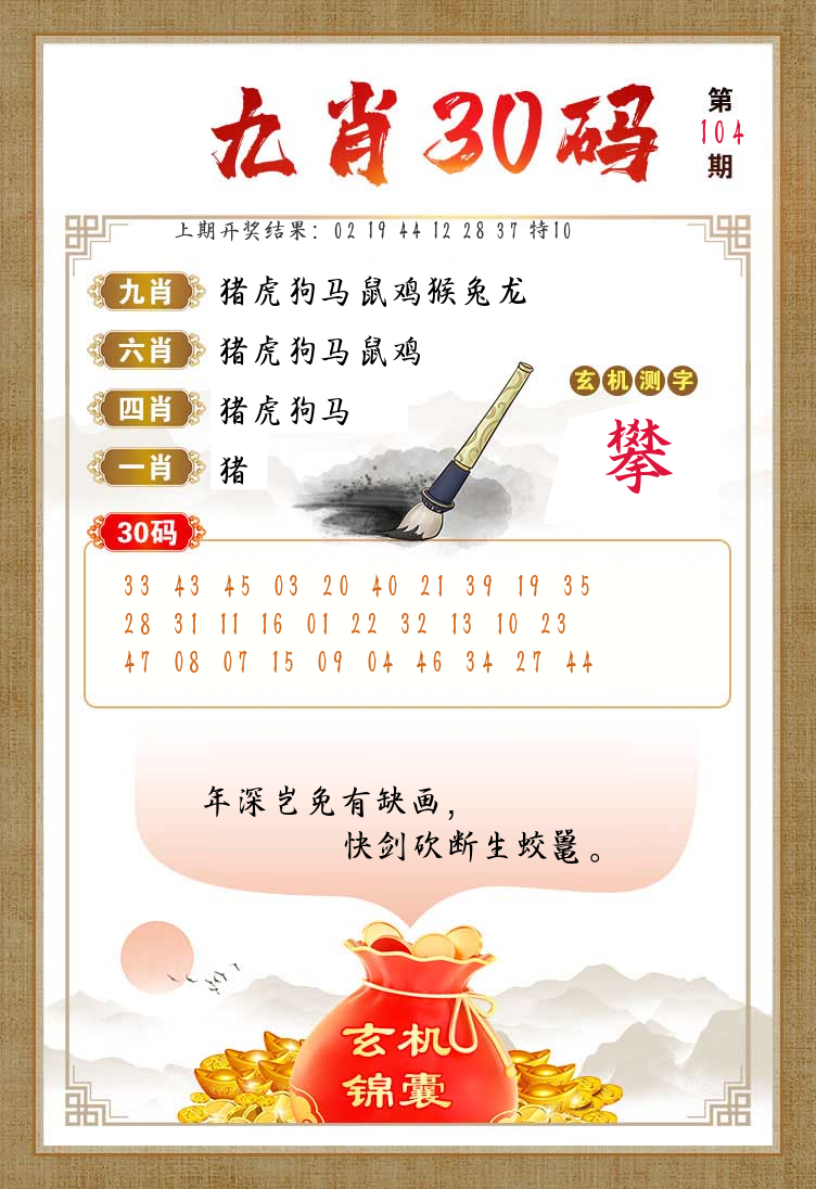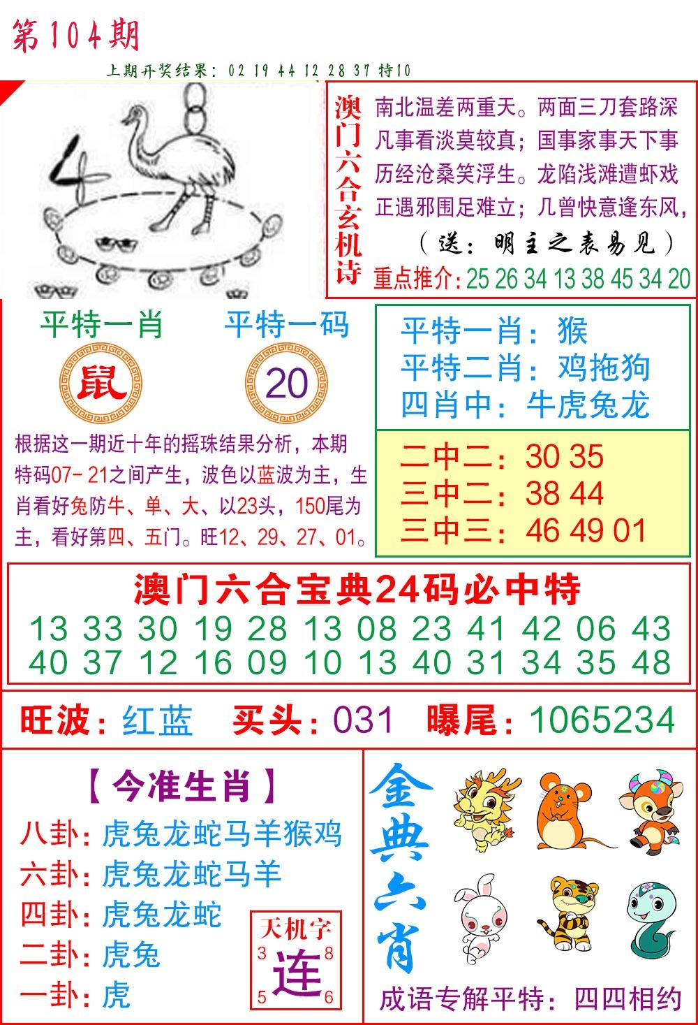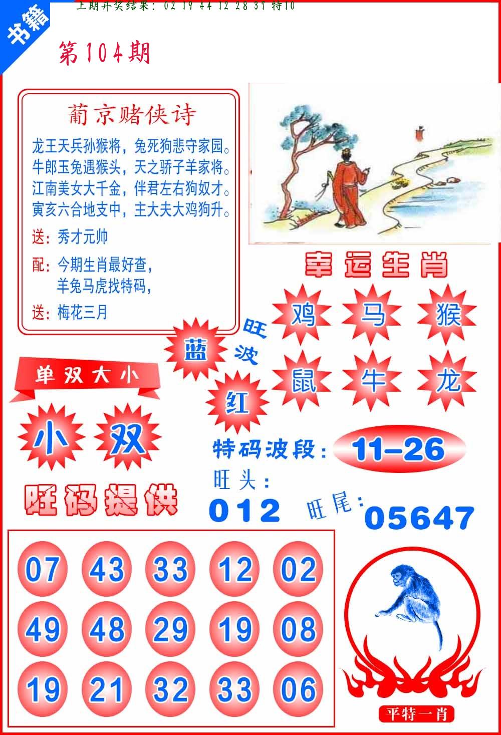 | 104期【三连肖/11.12倍】