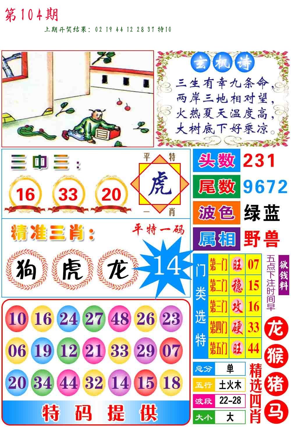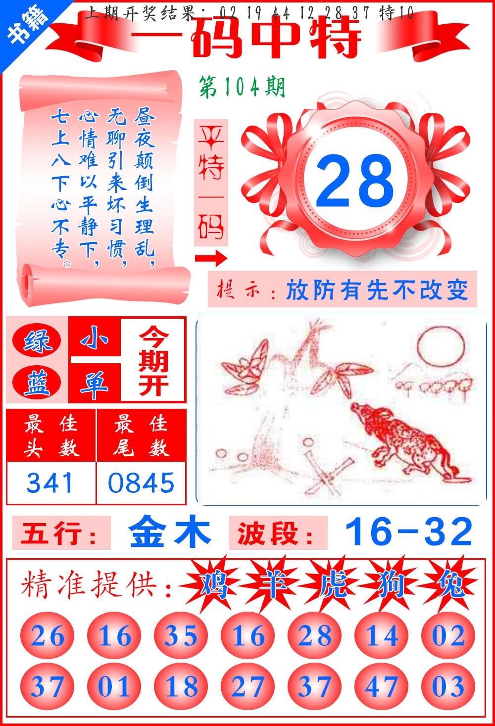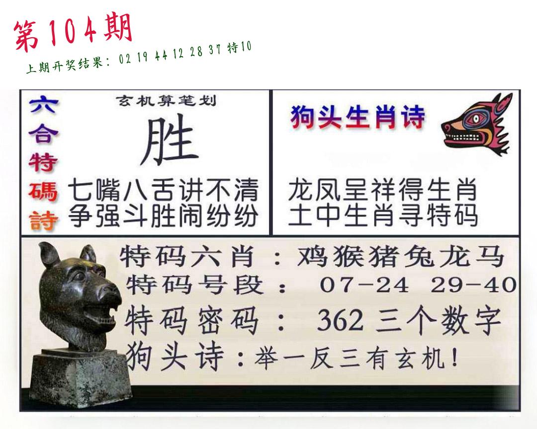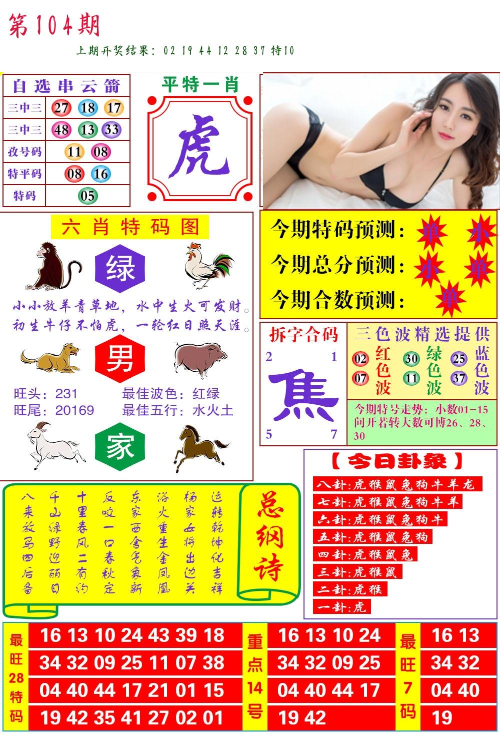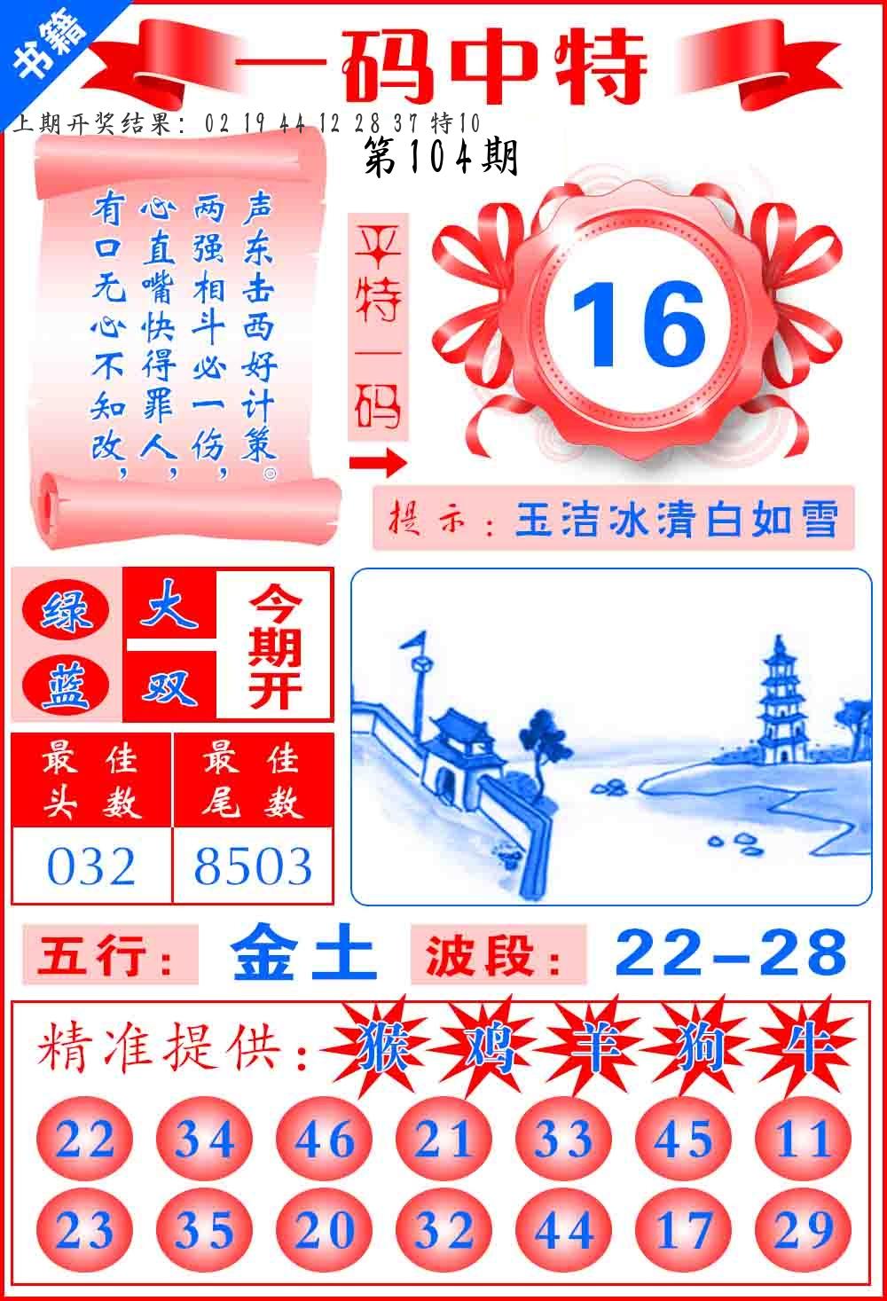 | 104期:8肖16码开:???????