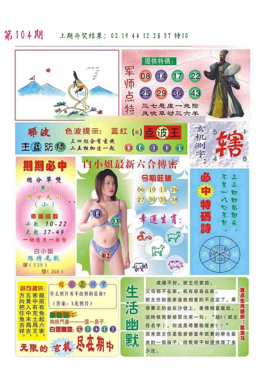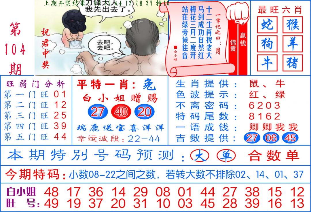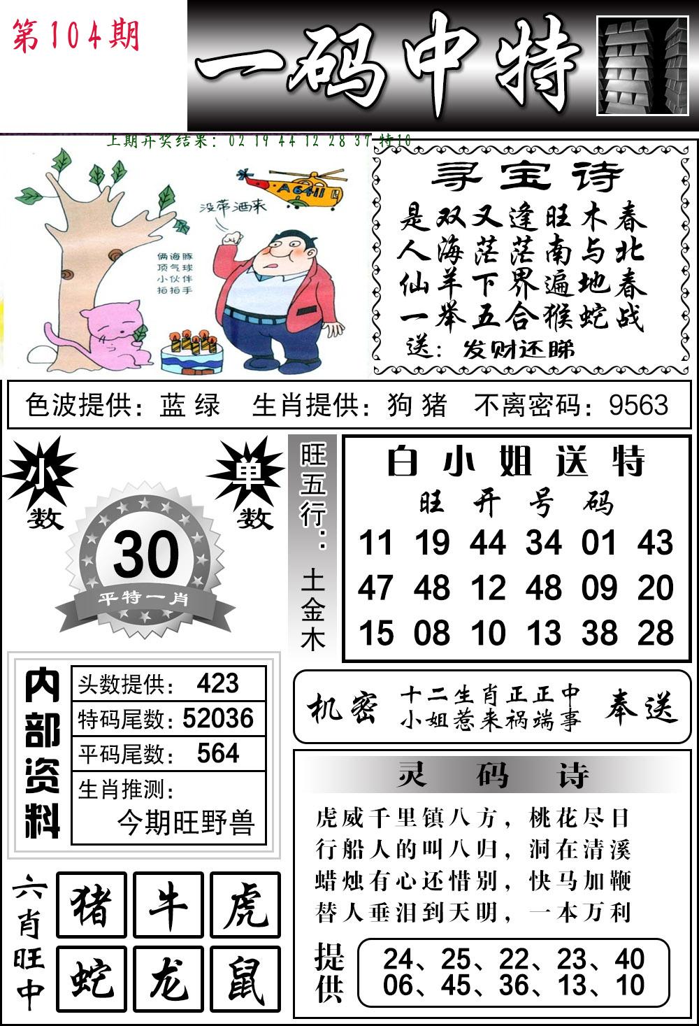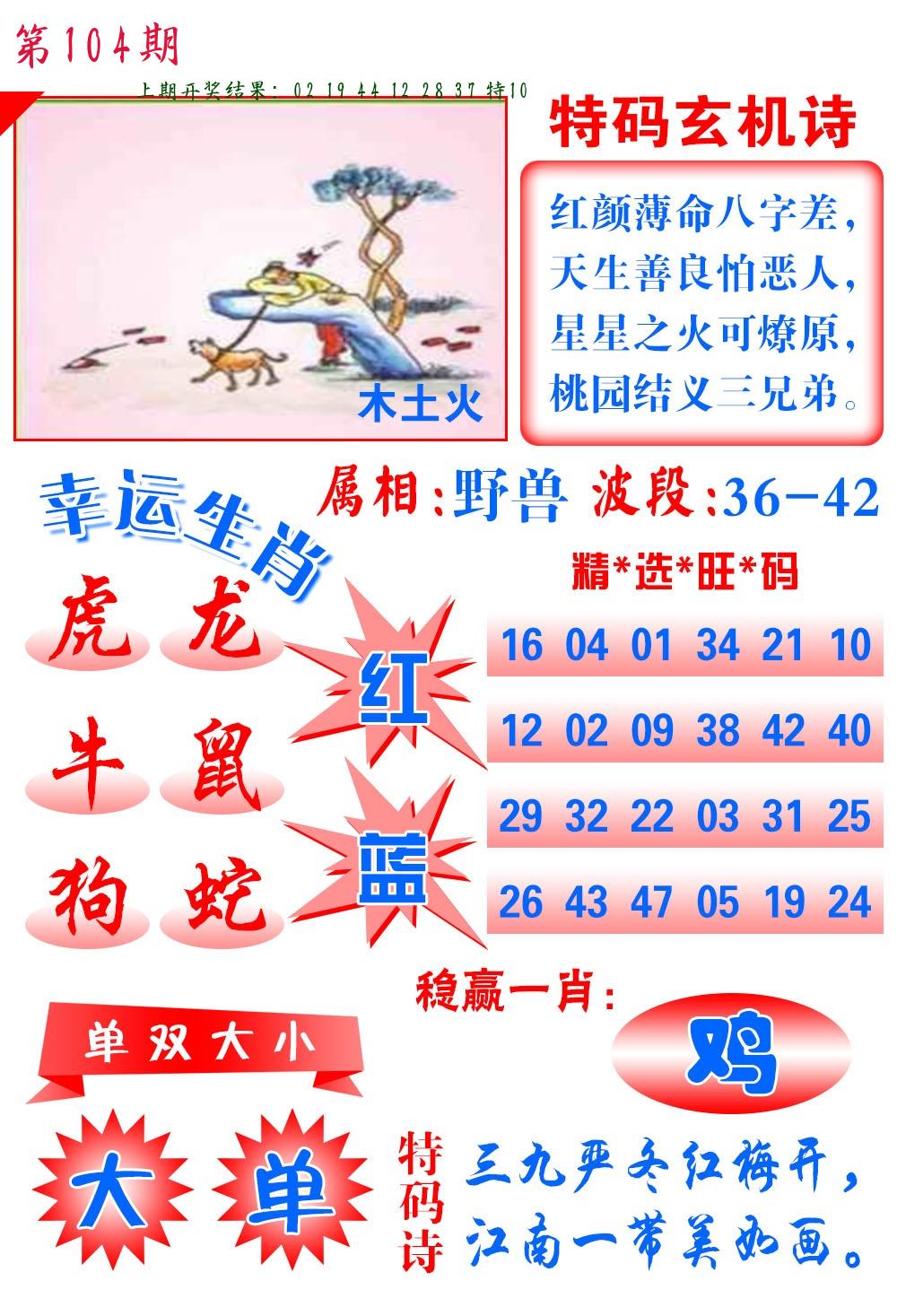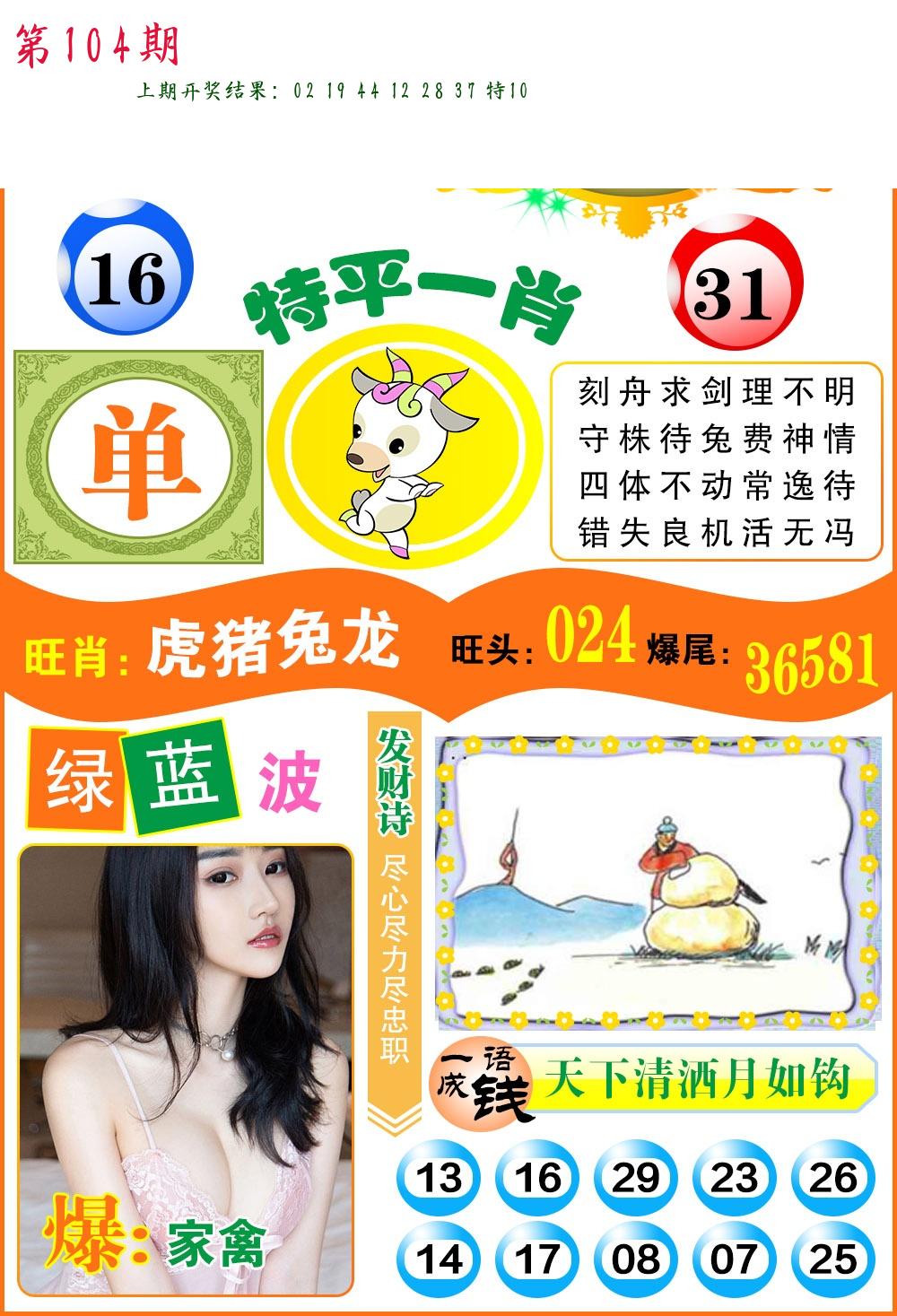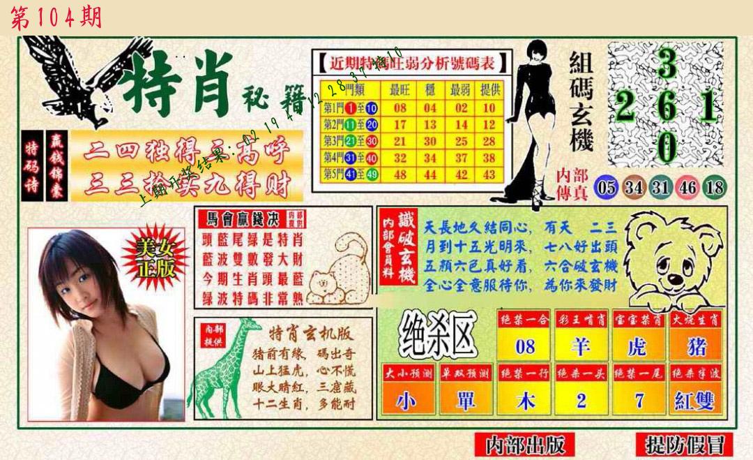 | 104期:8肖16码开:???????