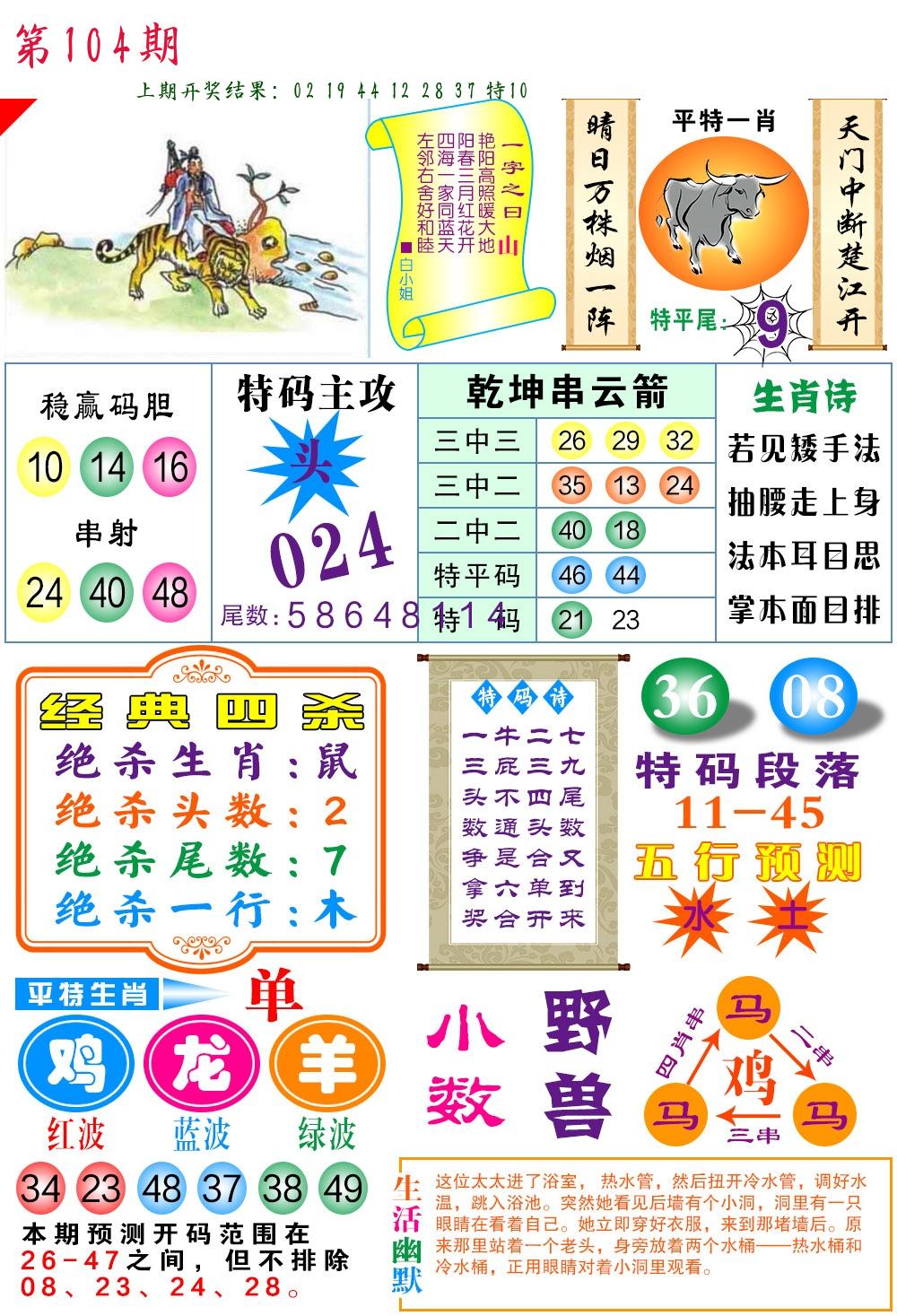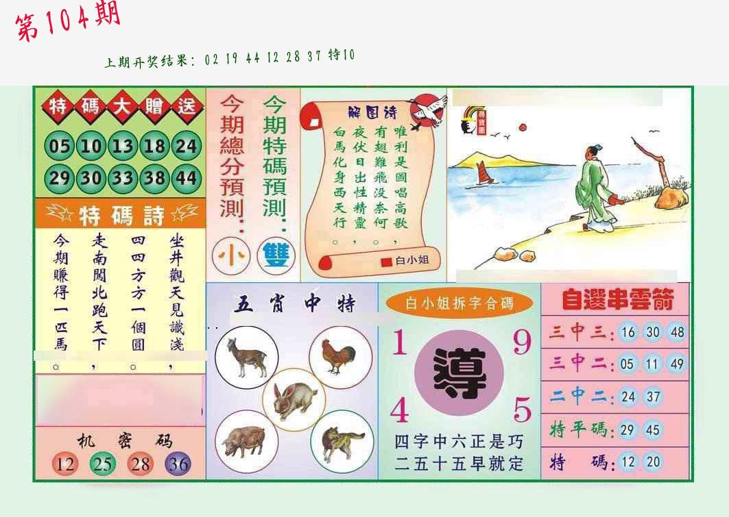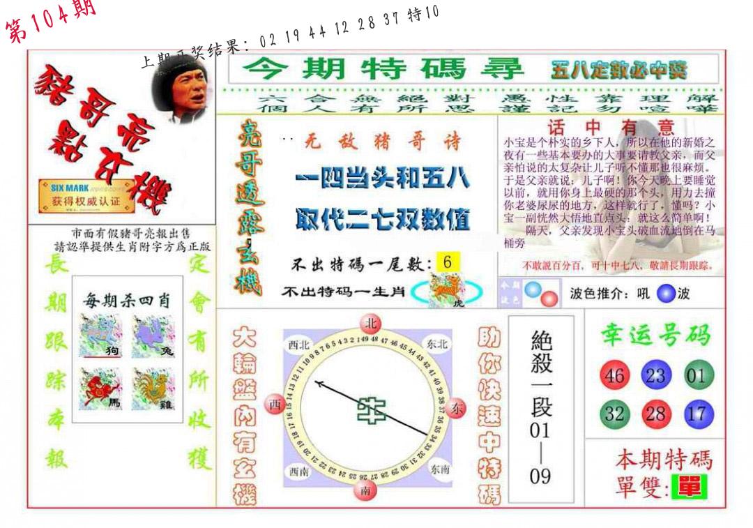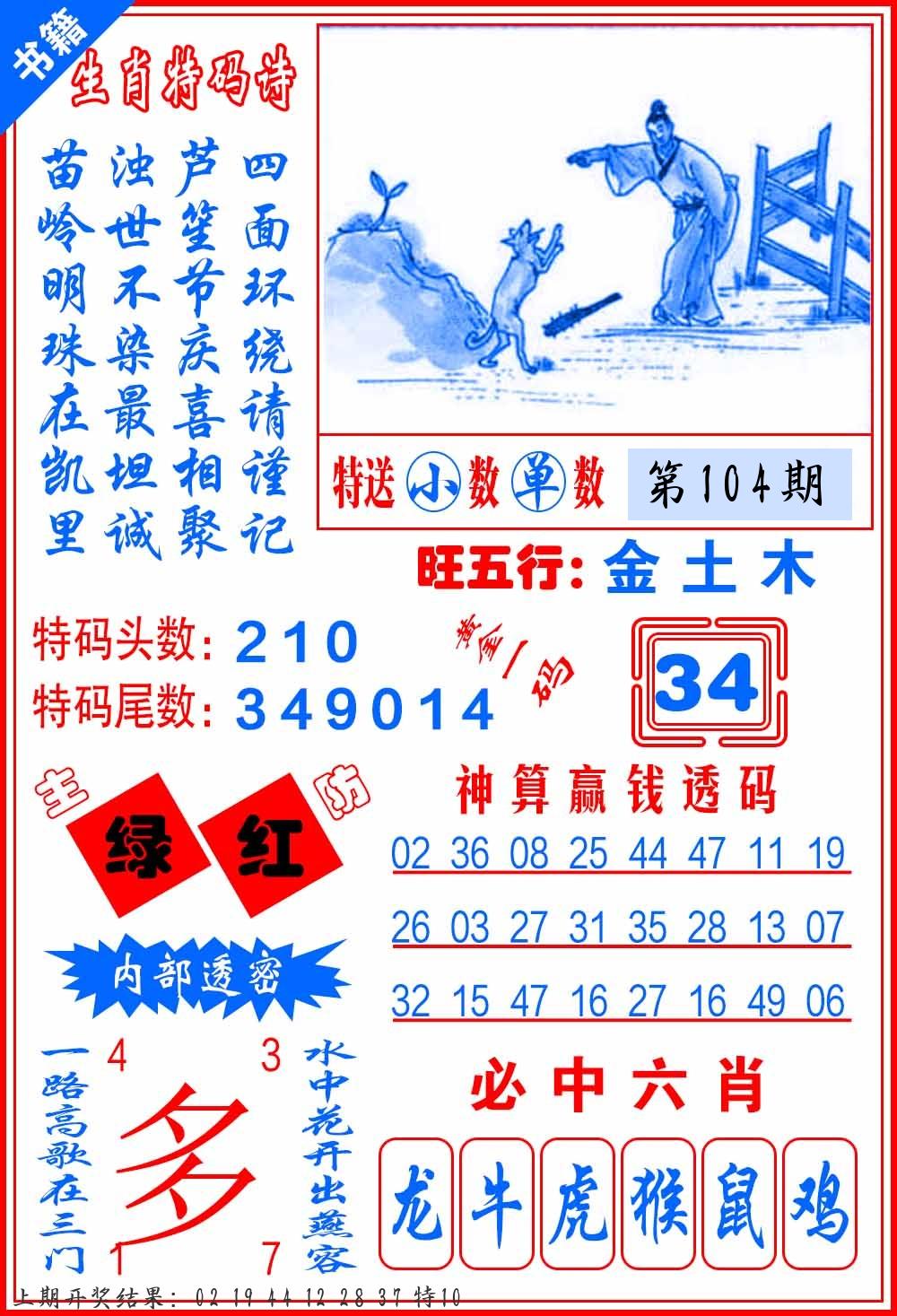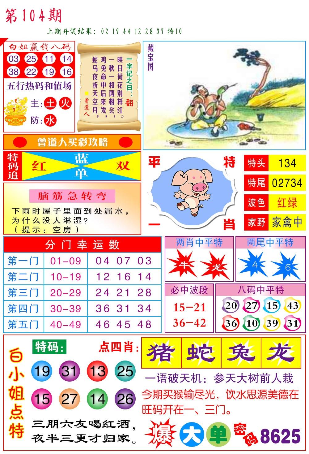 | 104期:8肖16码开:???????