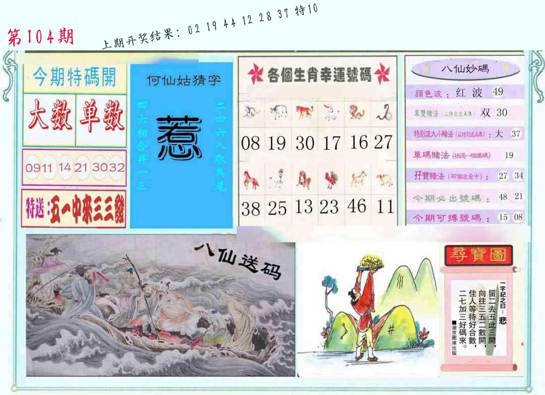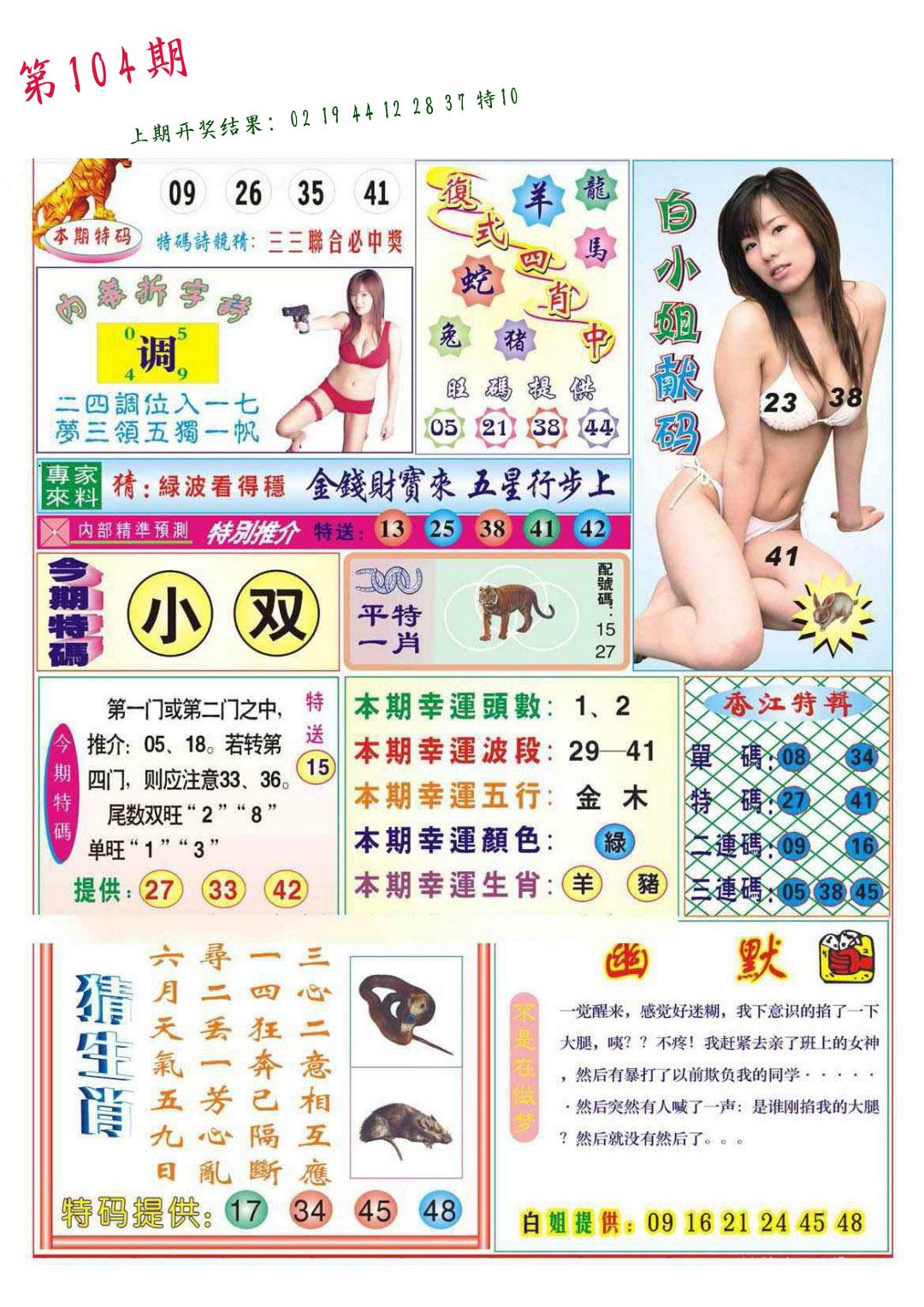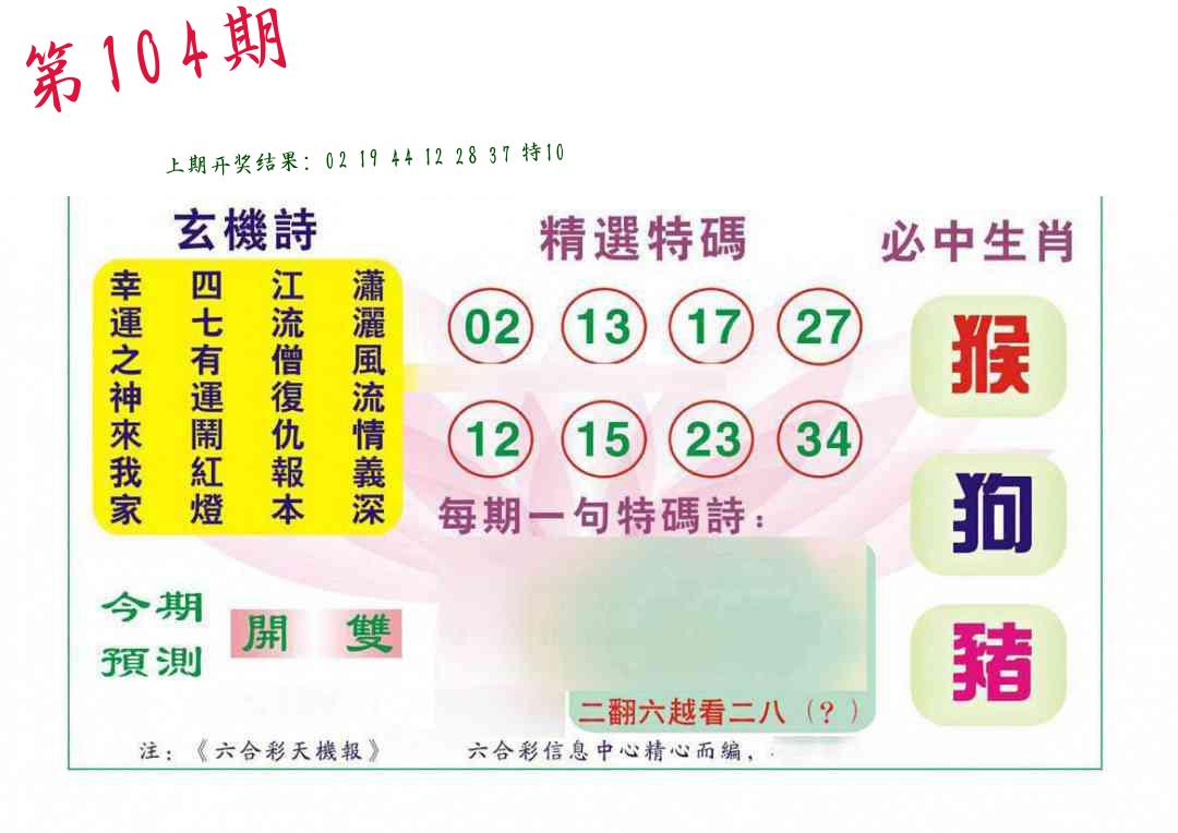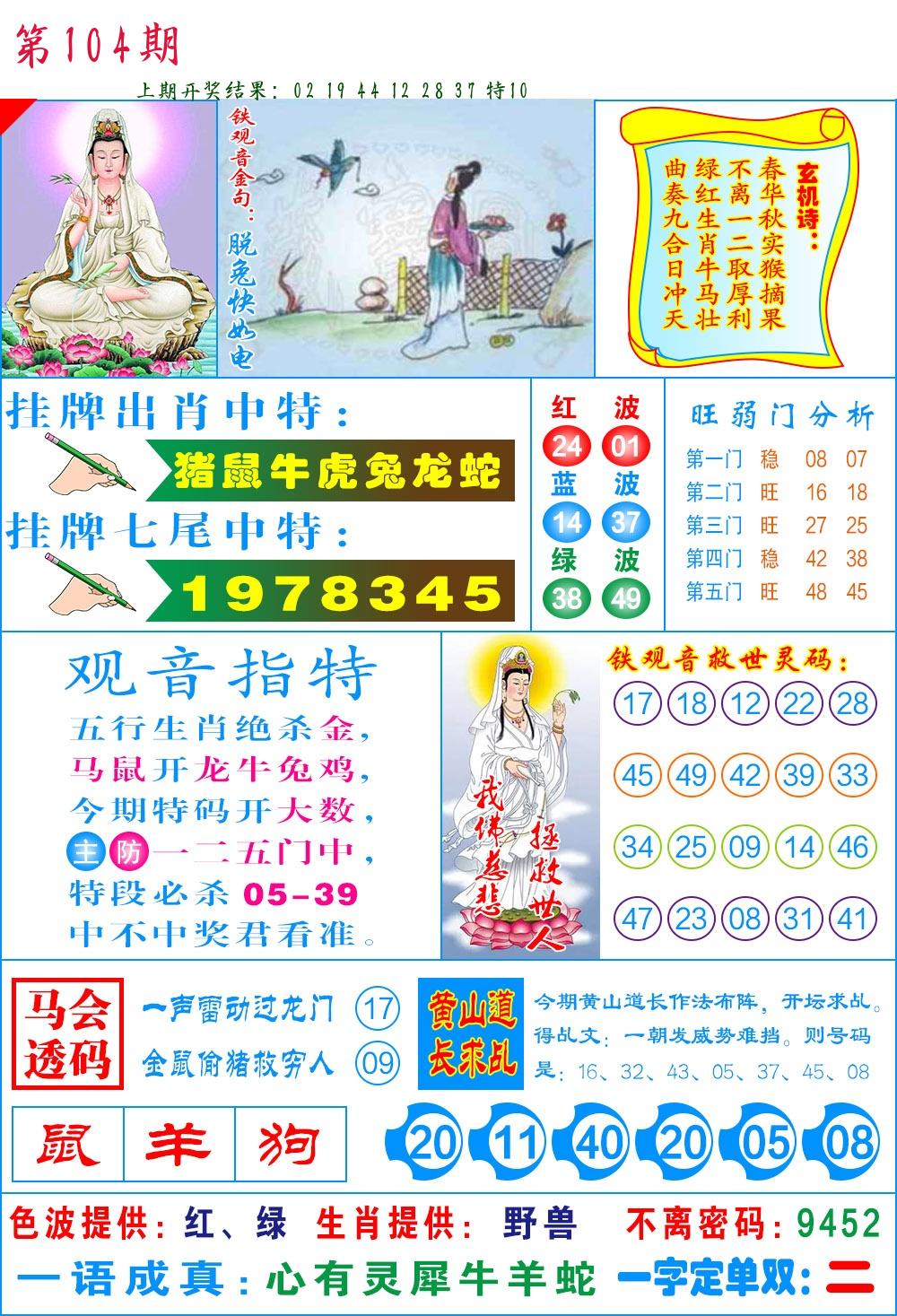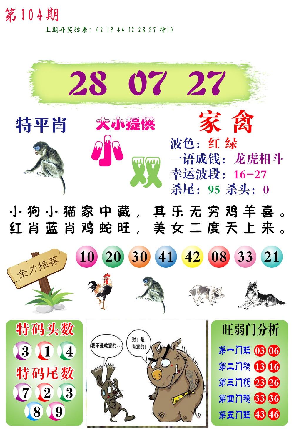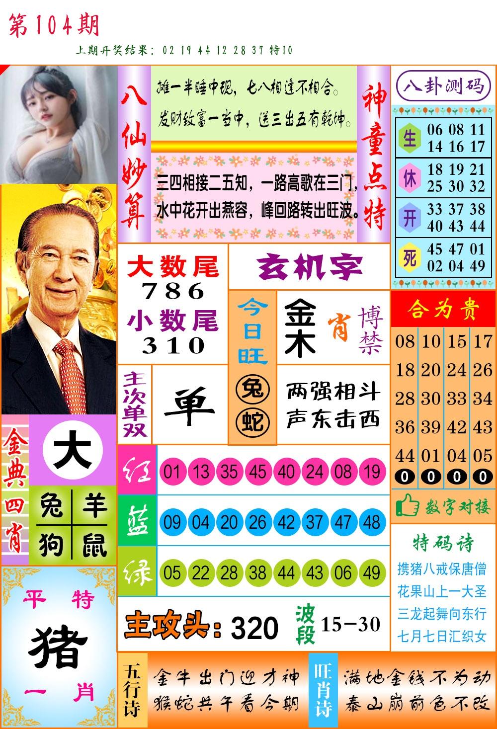 | 104期:8肖16码开:???????