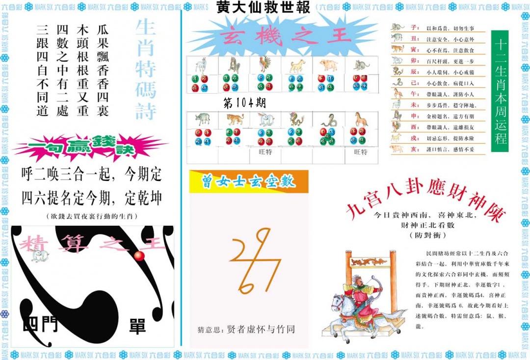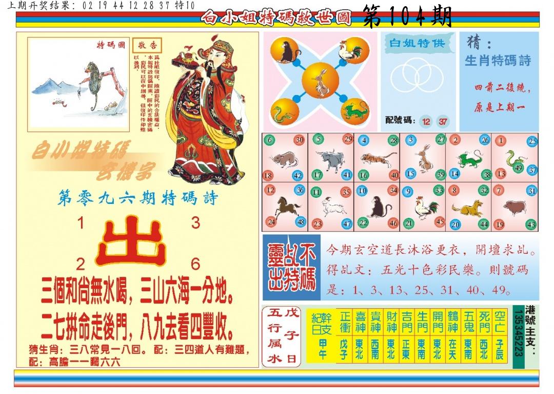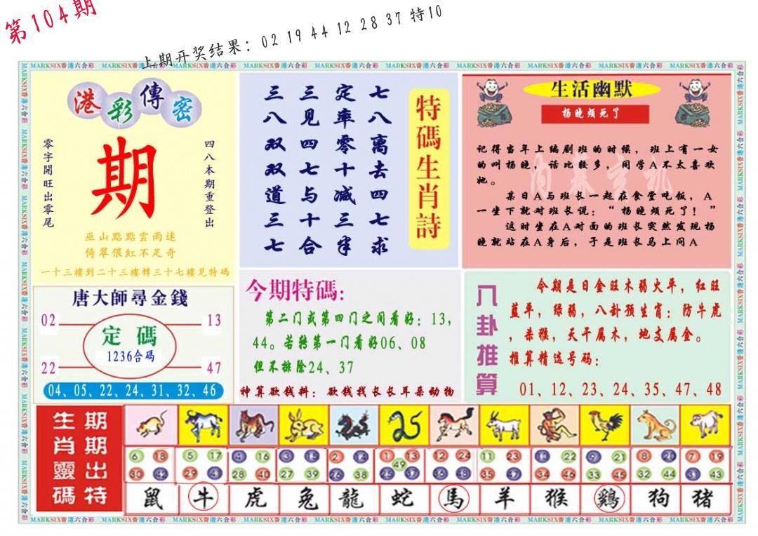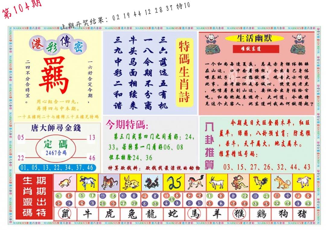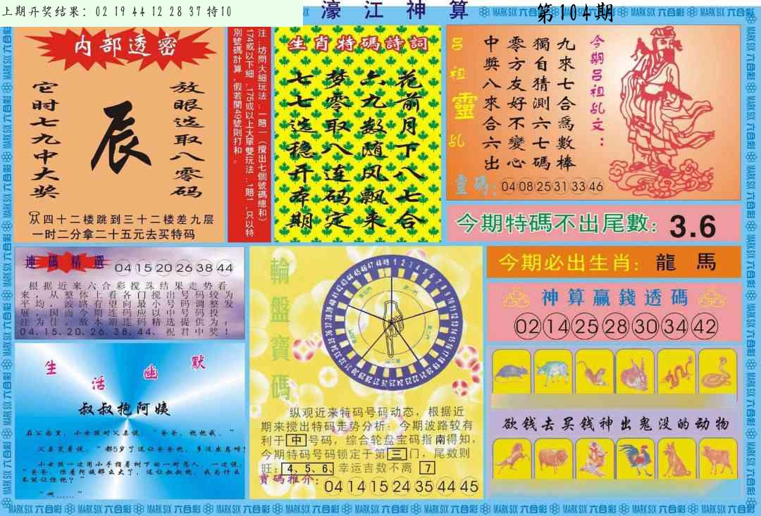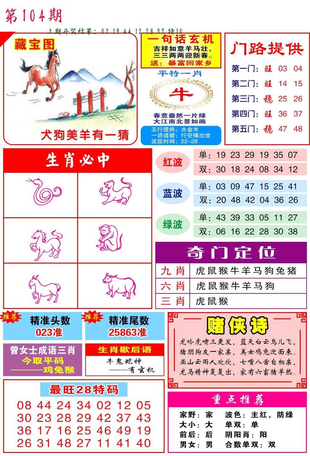 | 104期:8肖16码开:???????