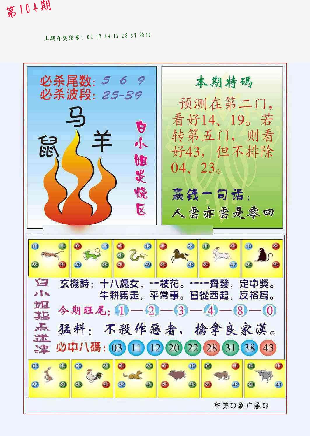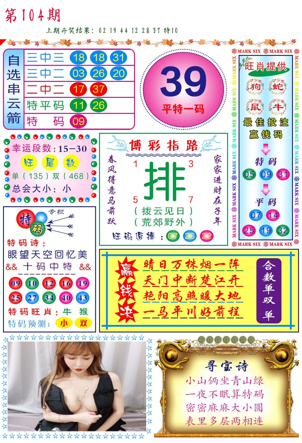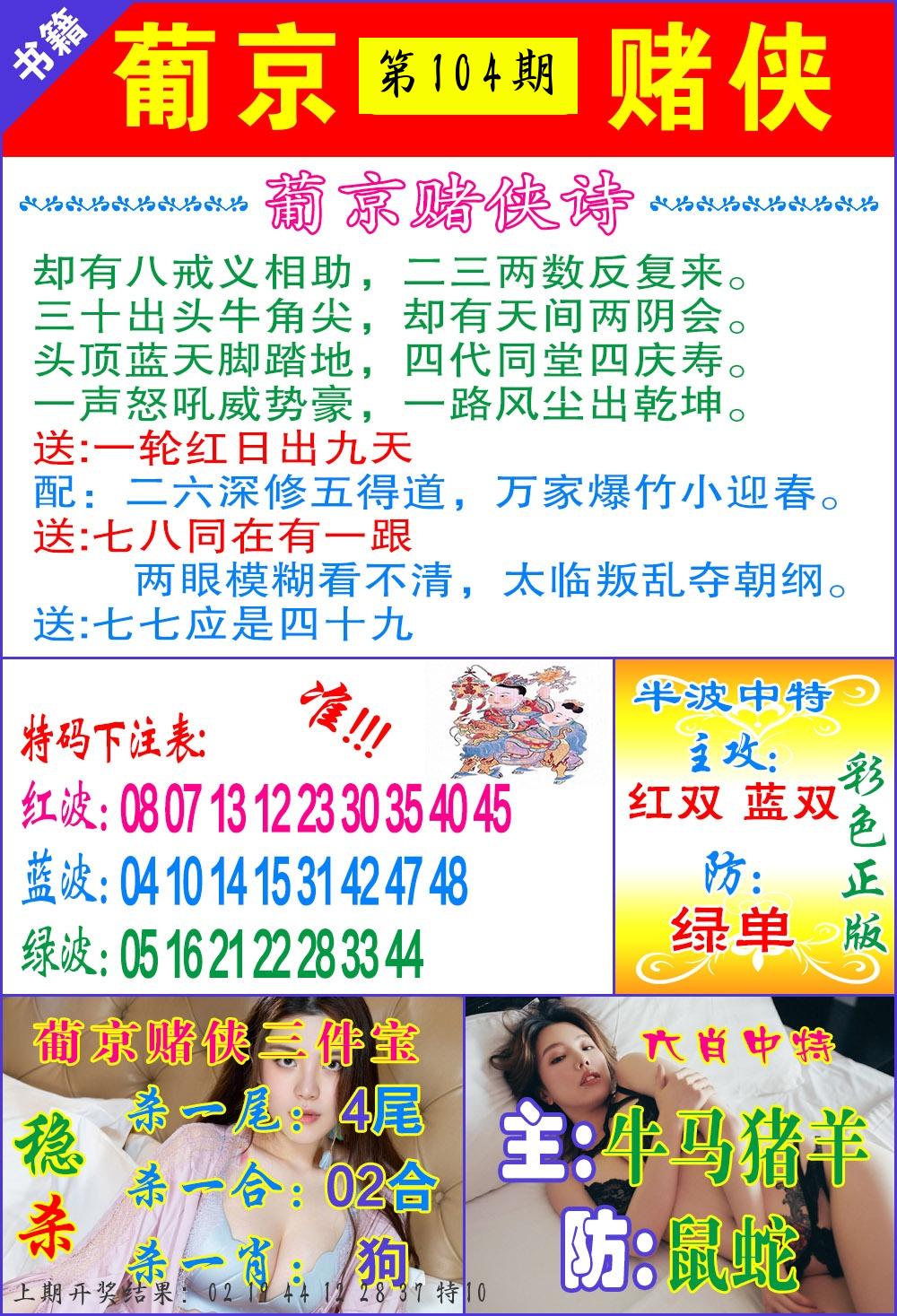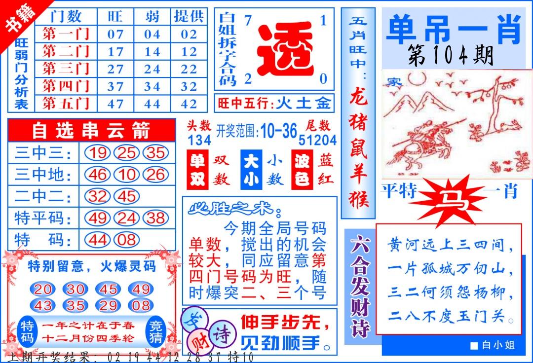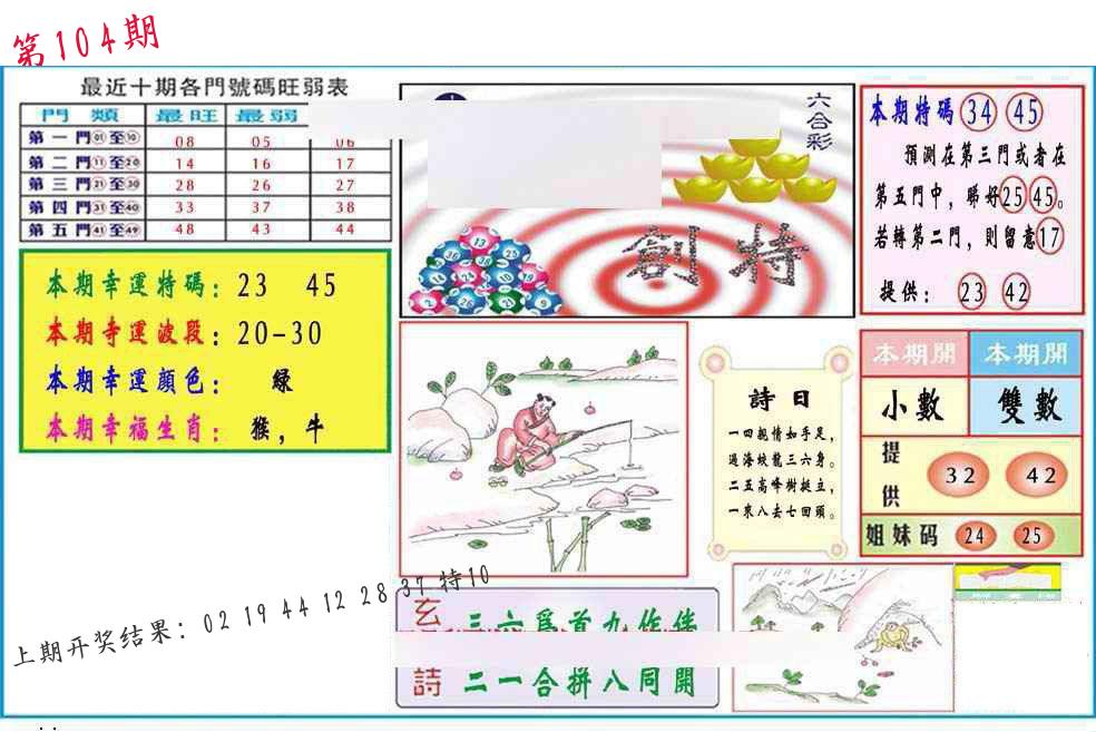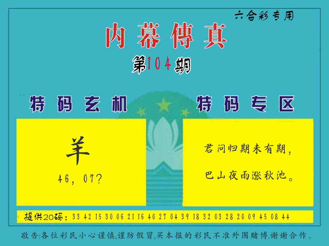 | 104期:8肖16码开:???????