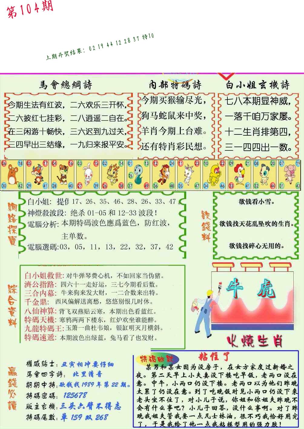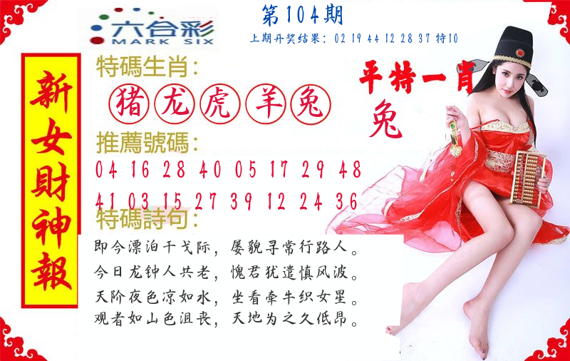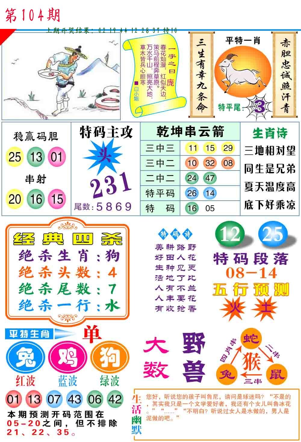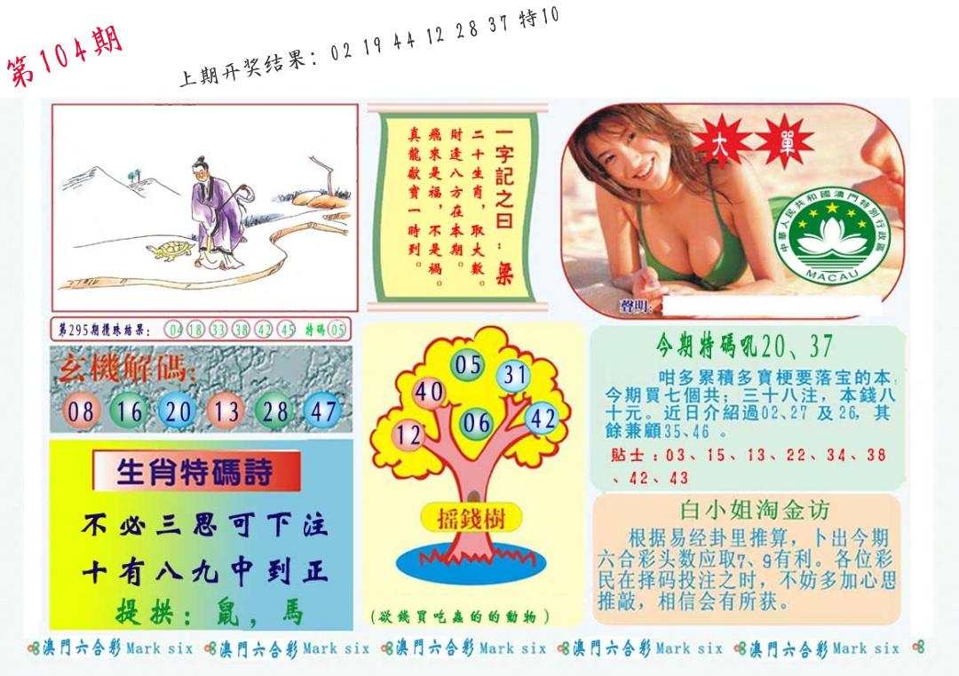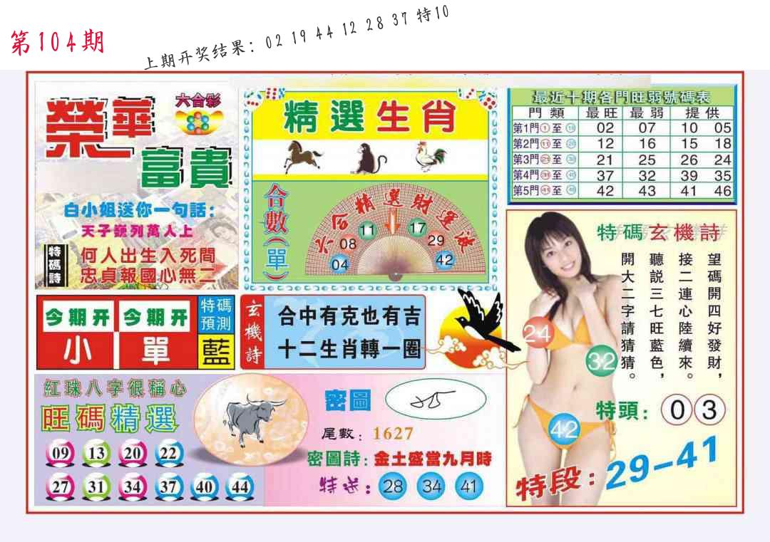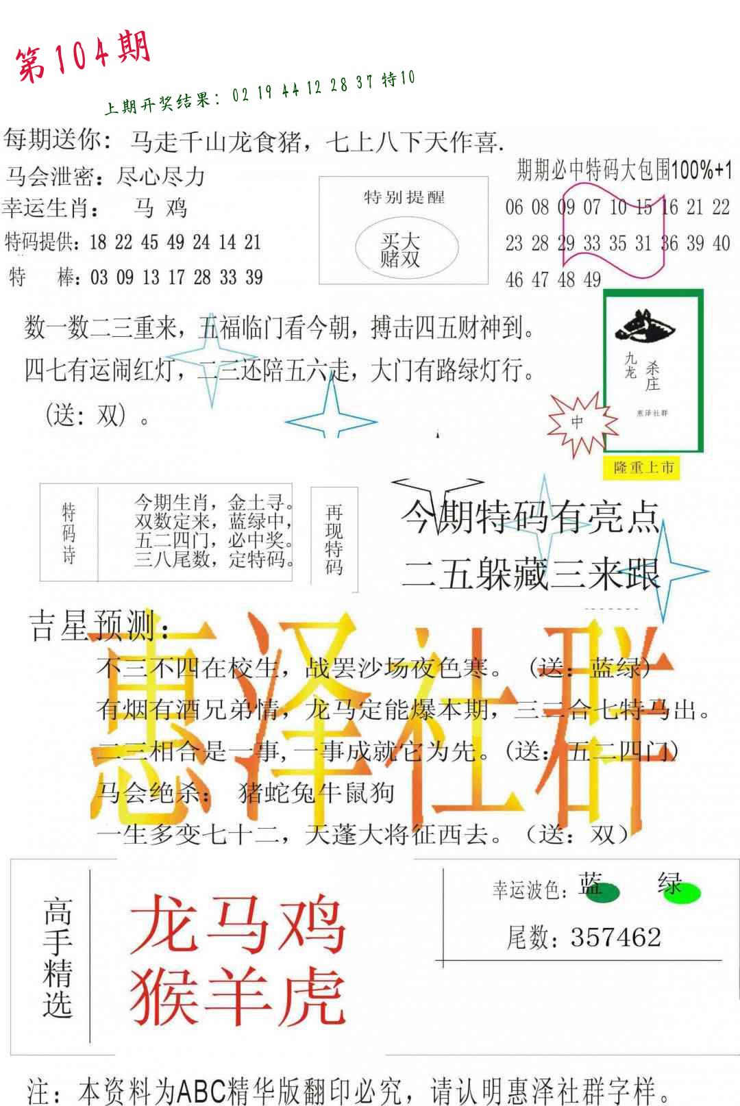 | 104期:8肖16码开:???????