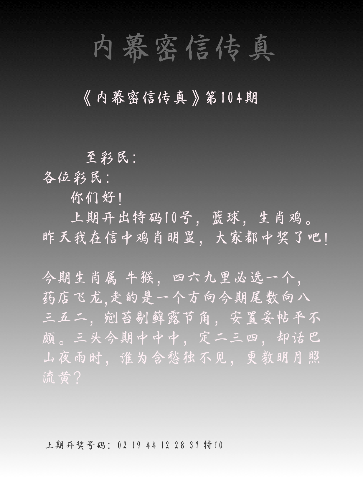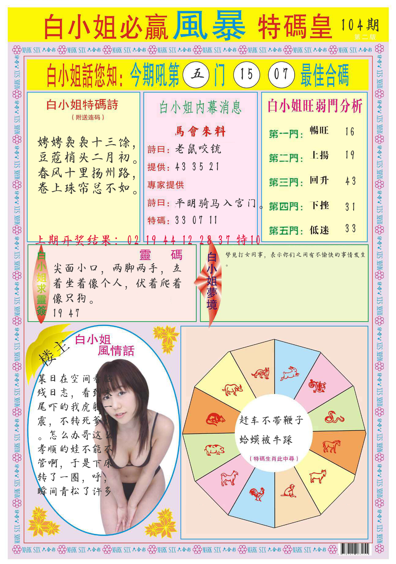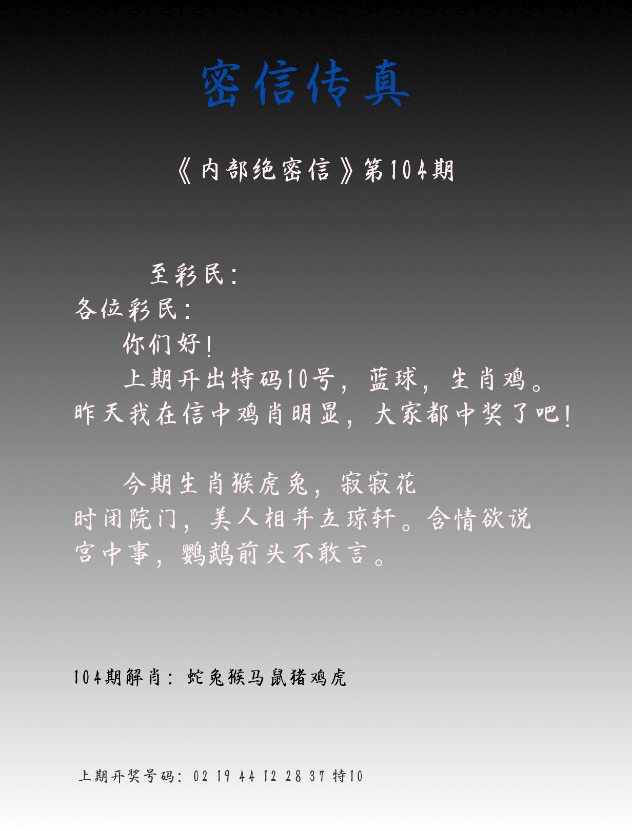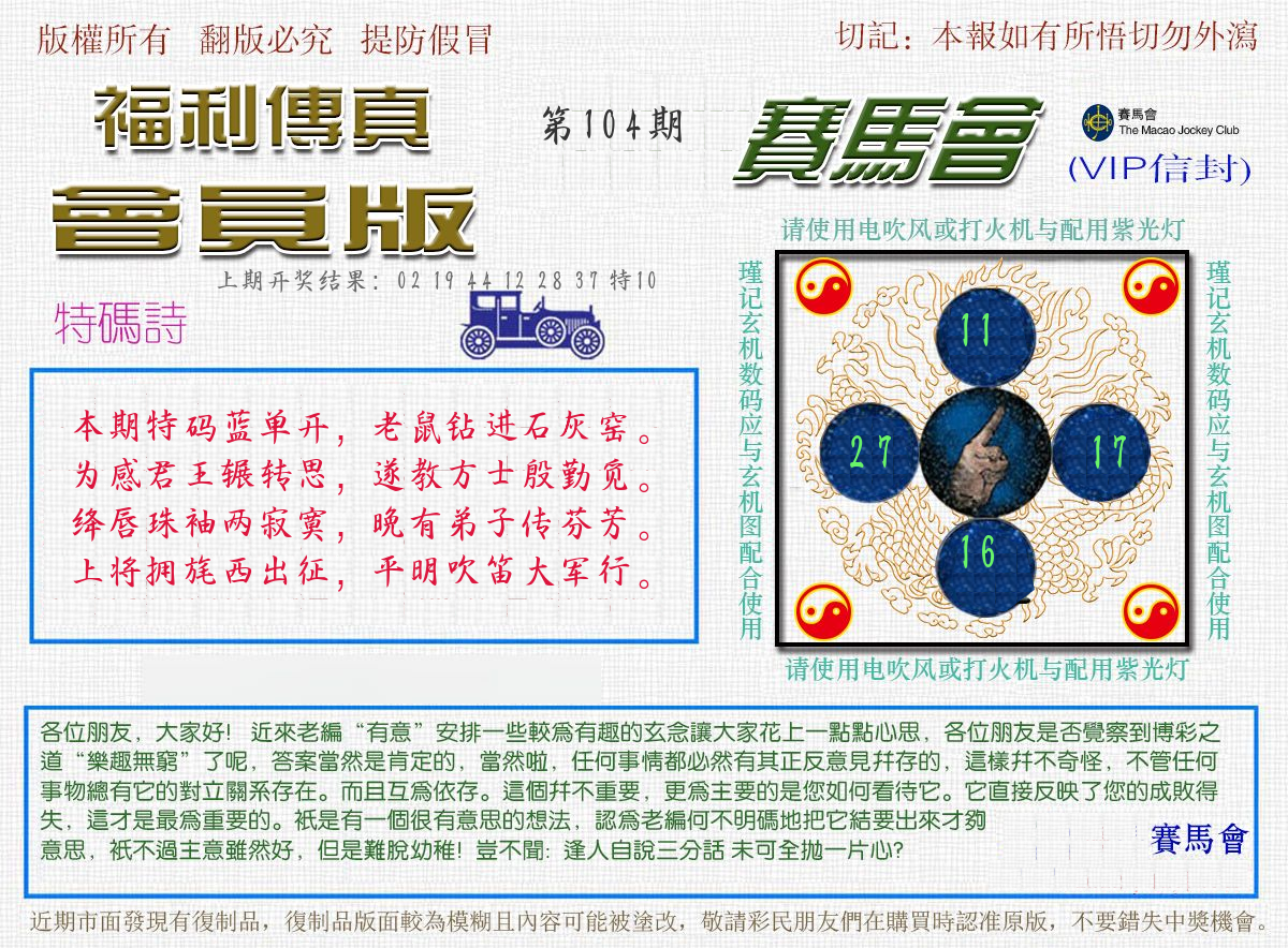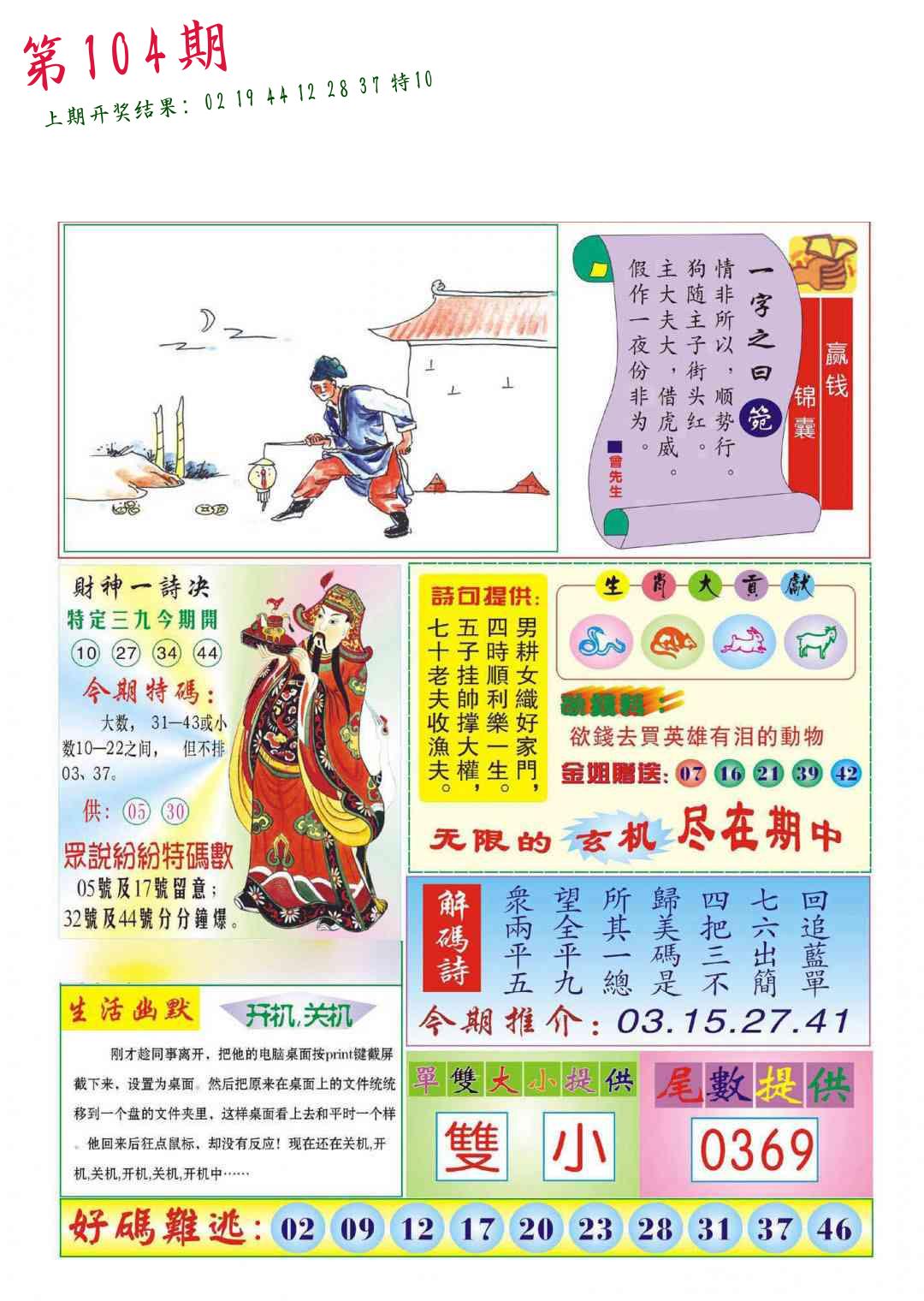 | 104期:8肖16码开:???????
