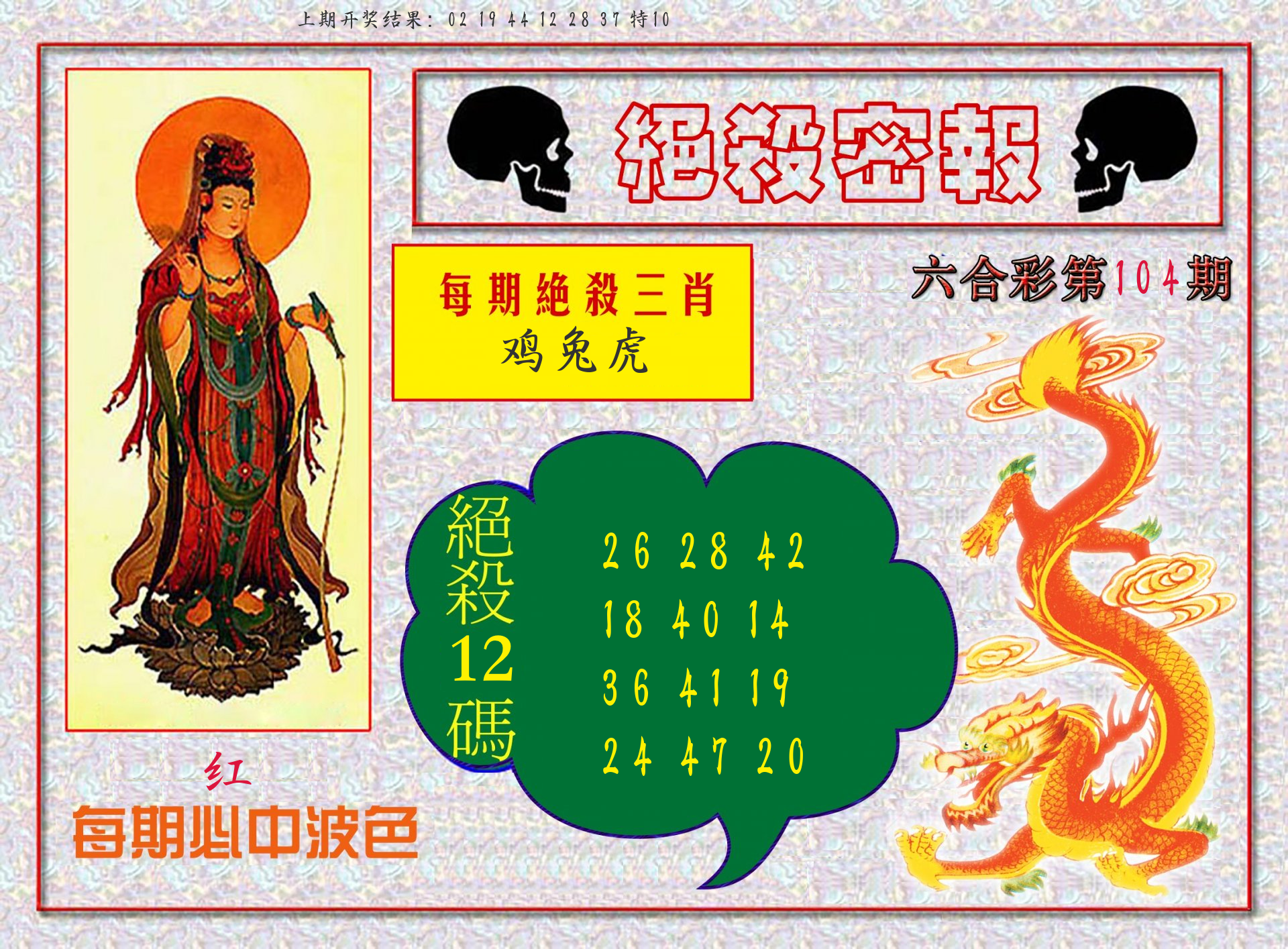 | 103期:绝密▲双波【红波+绿波】开:10鸡错 |