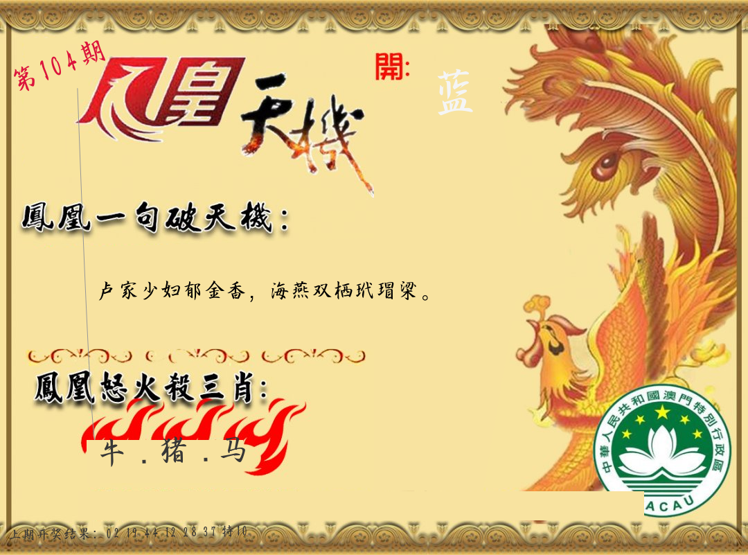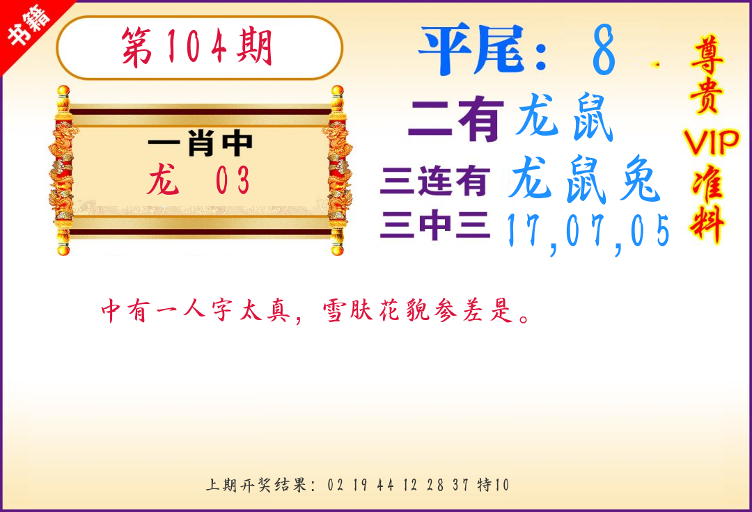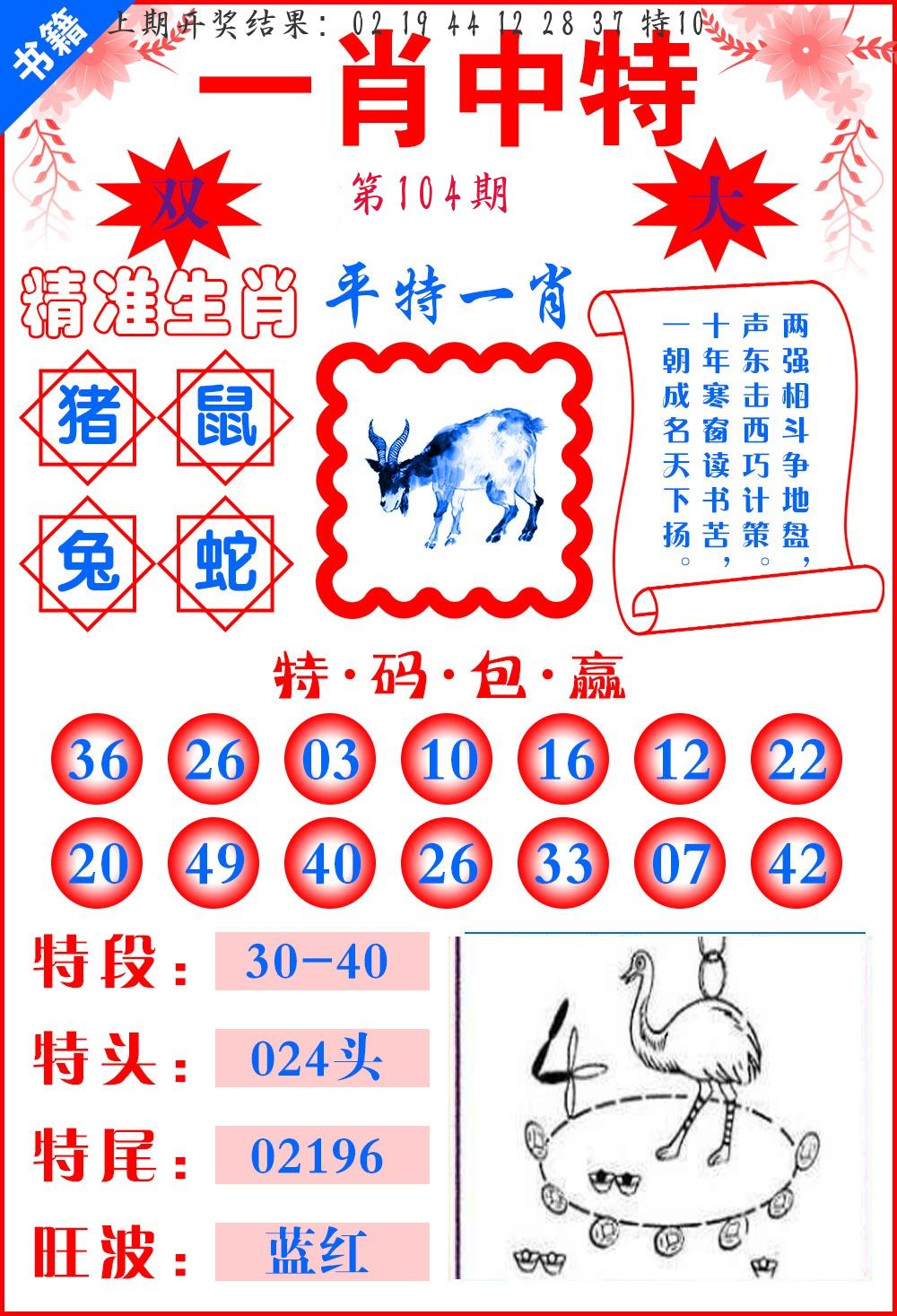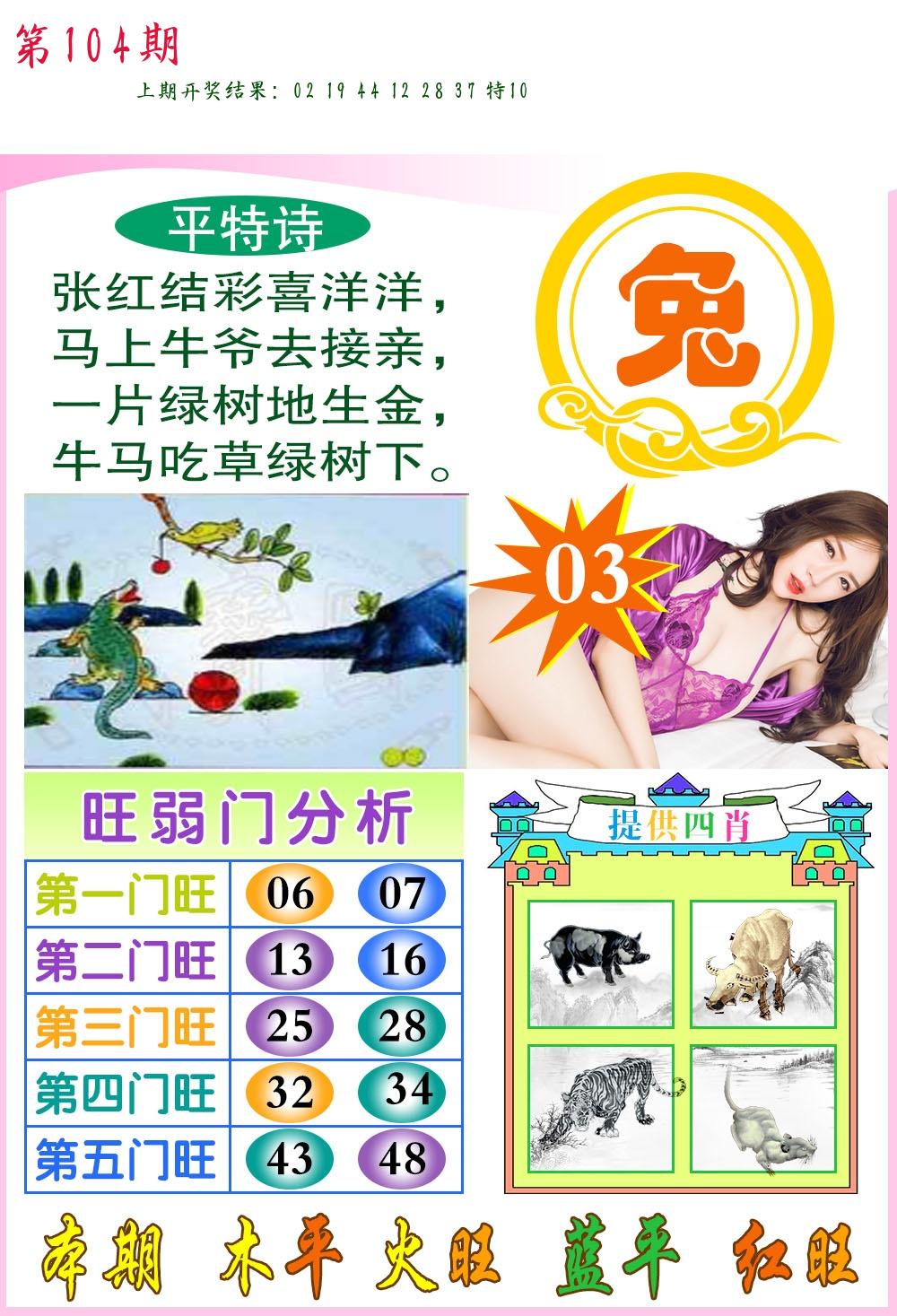 | 103期:平特一尾【444尾】开:44猪对 |