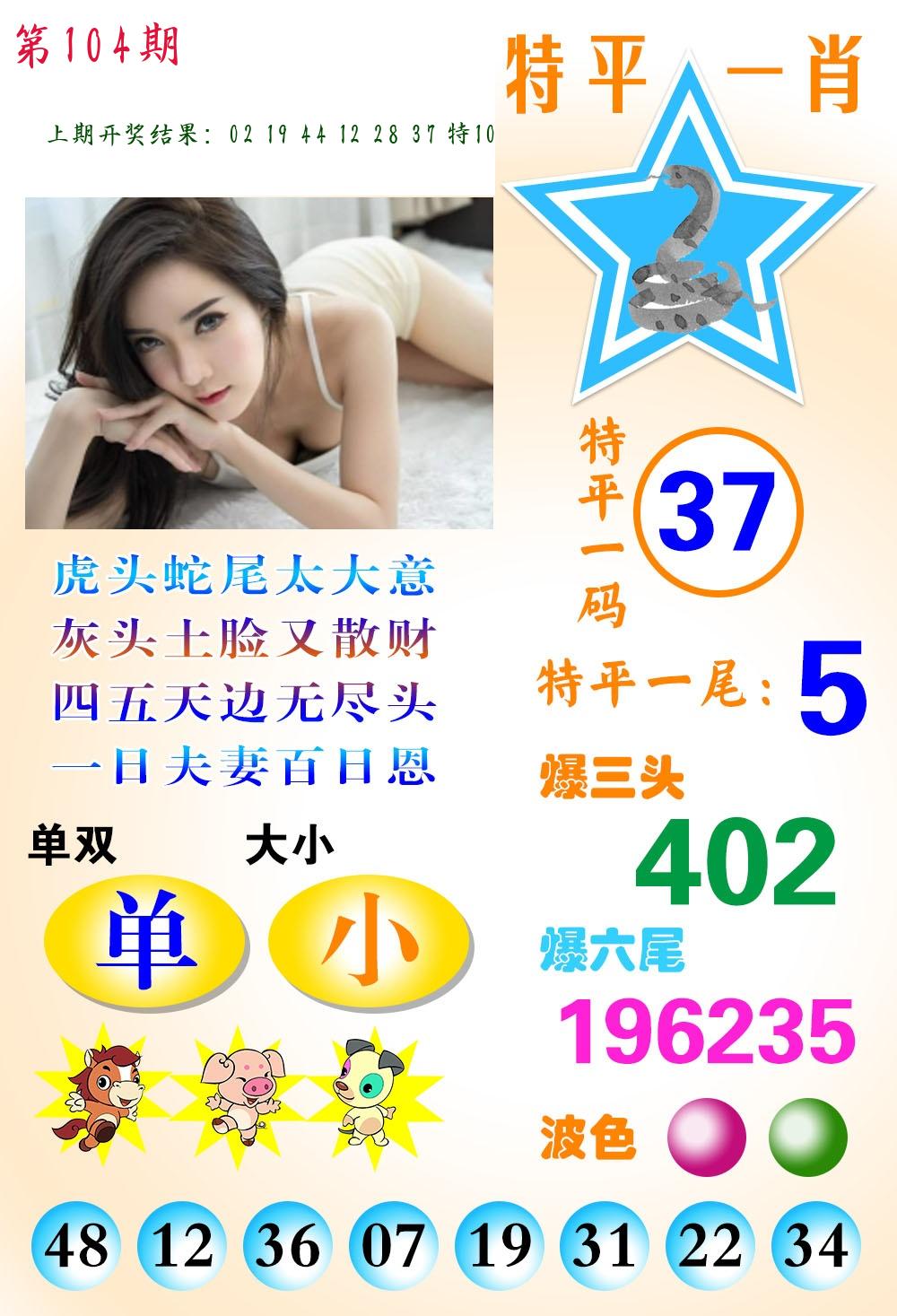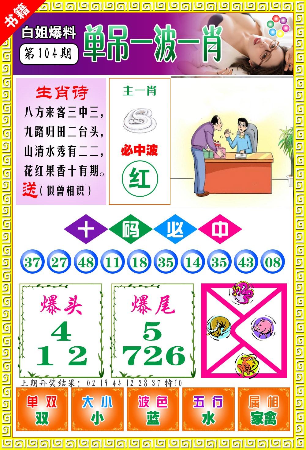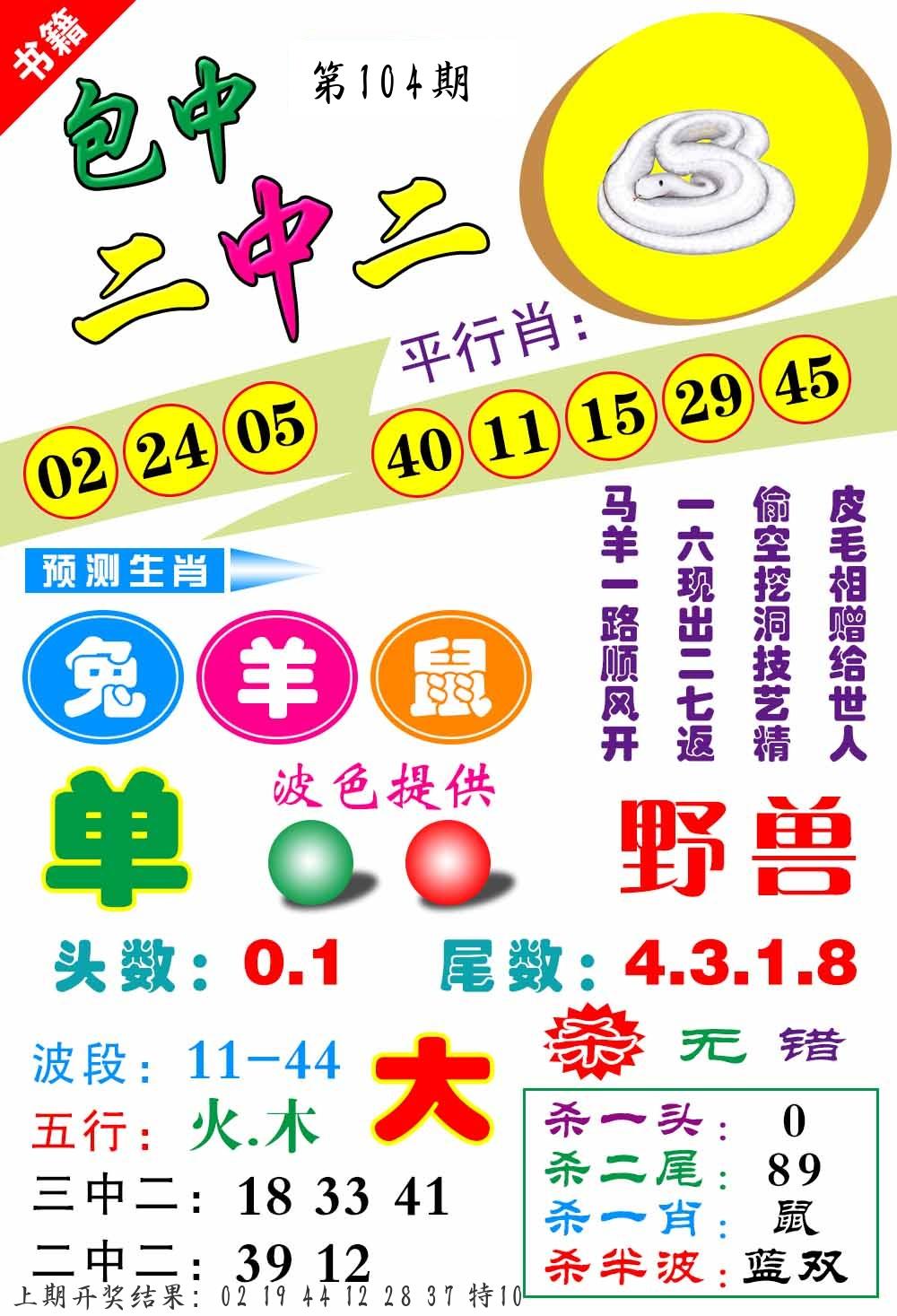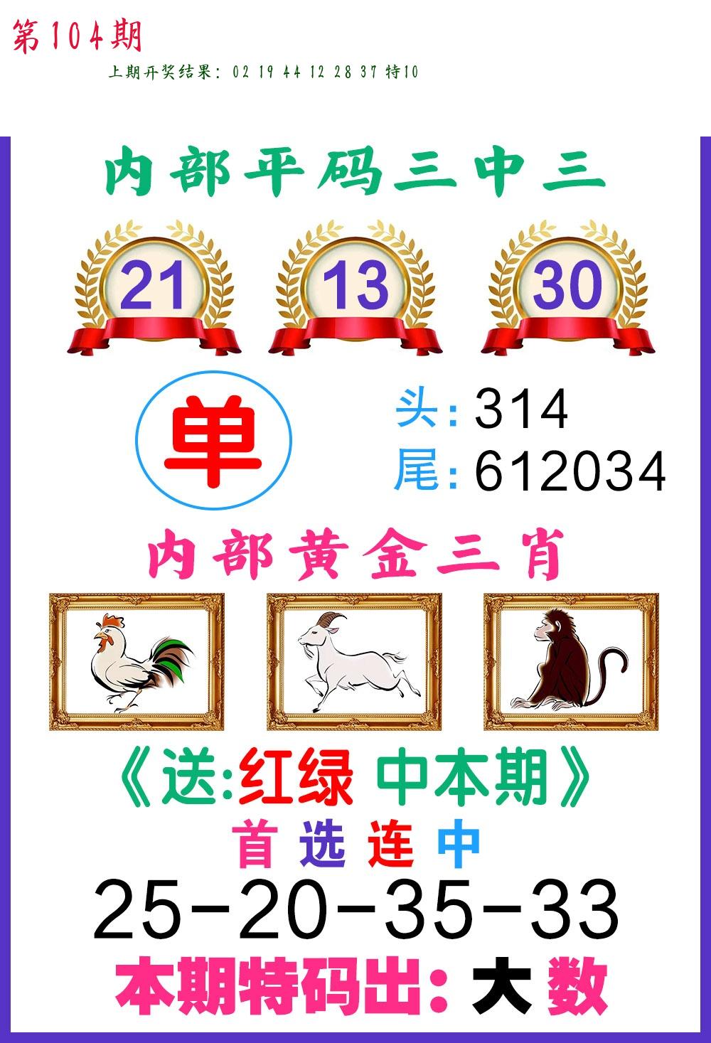 | 104期 二肖: 蛇马 | ③码: 14.36.38 |