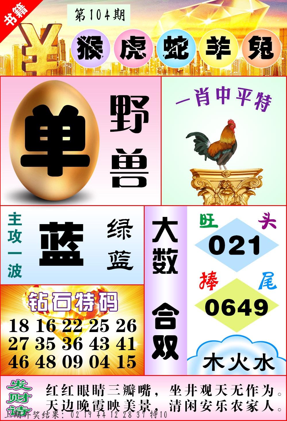 | 104期:2字爆平特【假威】开:????? |